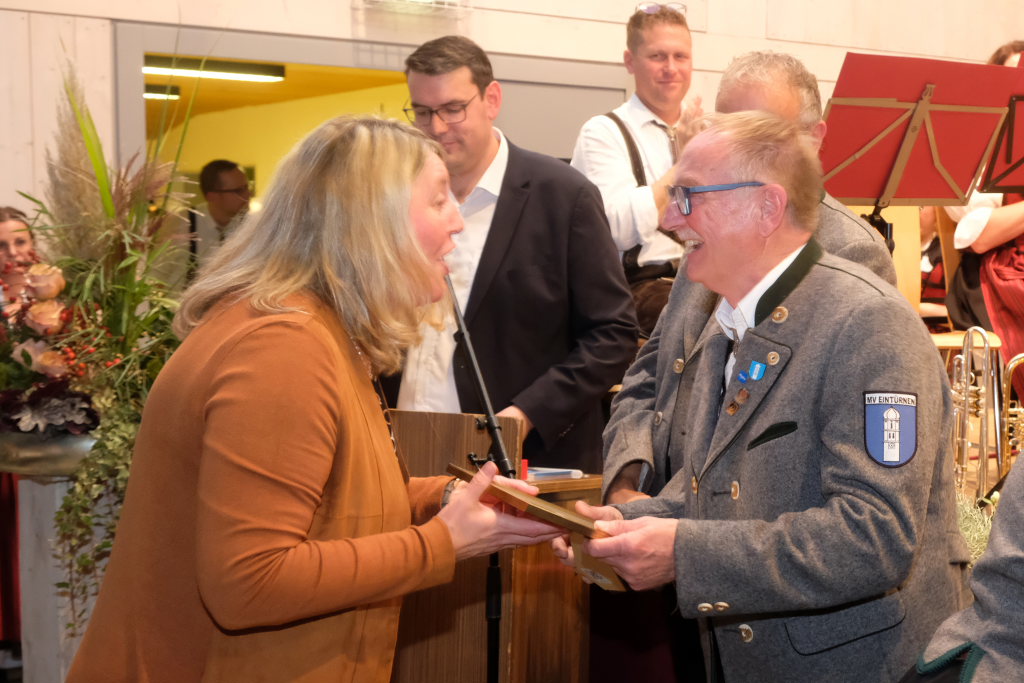Eintürnen – Dem stellvertretenden Blasmuskreisverbandsvorsitzenden Klaus Wachter fiel die Ehre zu, 23 (!) Musikern des Vereines den Dank und die Anerkennung des Landesverbandes für ihr langjähriges Engagement im Dienste der Blasmusik auszusprechen und sie mit den entsprechenden Ehrenzeichen auszustatten. Es wurden wunderbare, witzige 40 Minuten, in denen das Publikum sich entspannt zurücklehnen konnte, um den amüsanten Ausführungen von Klaus Wachter zu den einzelnen Musikern zu folgen.