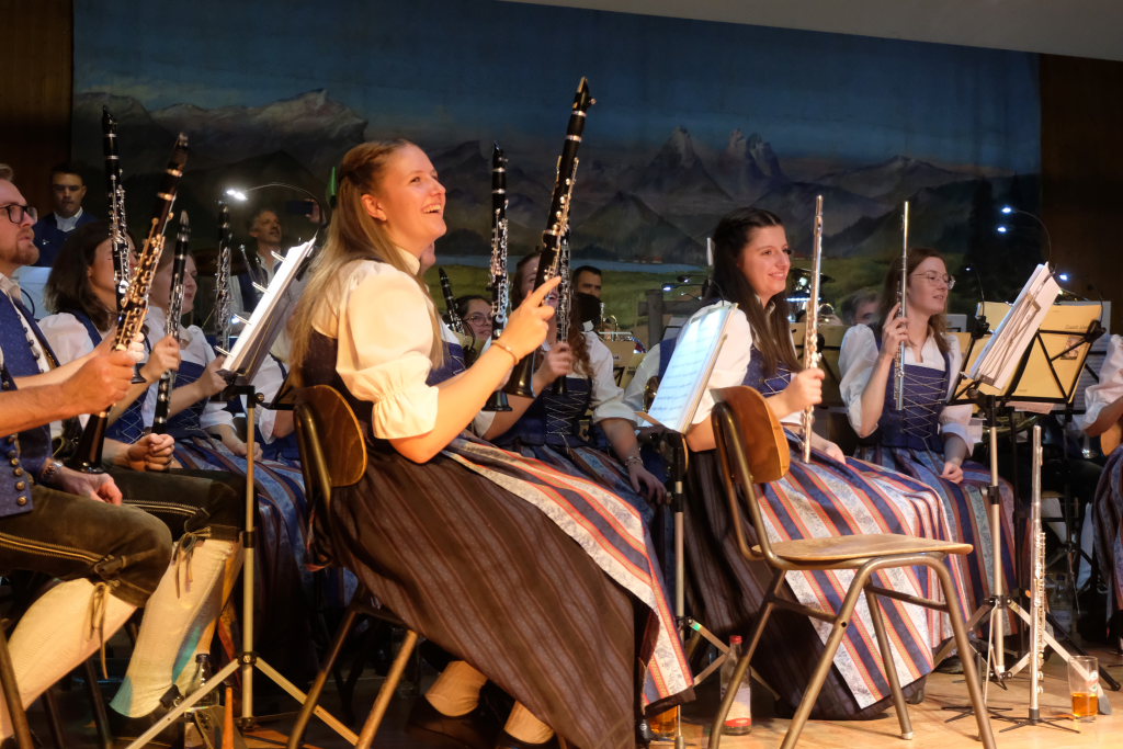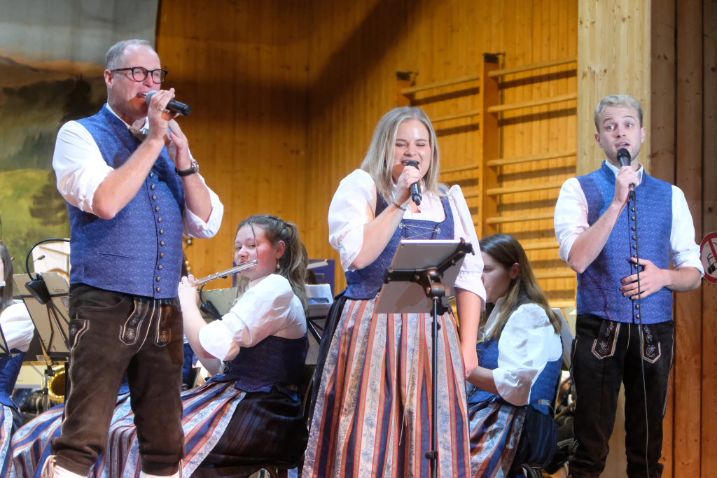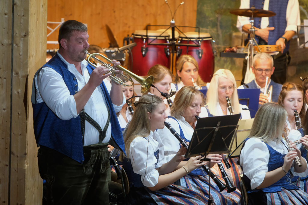 Eröffnet wurde der erste Teil des Abends mit klassischer Stimmungsblasmusik, nachdem Steffi Jöchle im Namen des Vorstandsteams zahlreiche Ehrenmitglieder, aber auch viele Abordnungen mit Musikern anderer Kapellen aus der Region, hatte begrüßen können. „Auch in diesem Jahr haben wir ein spezielles Feature ins Programm eingebaut: Ihr habt eine Stunde länger Zeit zum Feiern.“