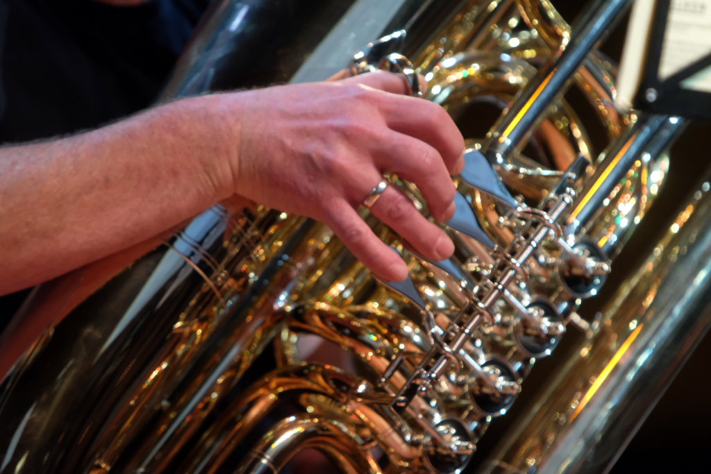 Doch auch die starken Männer und ihre Riesentrümmer, sprich die fünf (!) Bassisten des MV, durften sich gleich nach der Pause in den Vordergrund spielen. Ganz selbstverständlich und souverän meisterten sie ihre Soloparts und durften dabei einmal auch im Rampenlicht stehen.