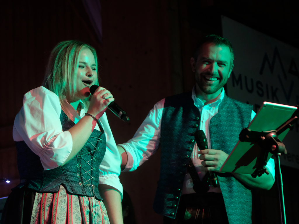 Ob der stimmbandmordende Titel „Ham Kummst“, den Maxi Hiemer und Stefan Braun sangen und den der Sohn von Berthold Hiemer aufwendig für Blaskapelle arrangiert hat, wohl ein kleiner Wink mit dem Zaunpfahl war, den Abend almählich zu beenden? Dann wandelte die Kapelle kurz darauf wieder mit dem Marsch „Im Eilschritt“ und „Bis bald Aufwiederseh´n“ auf klassischen Blasmusik-Pfaden. Wenn, dann wäre der Wink ganz sicher nicht ernst gemeint gewesen: Denn auf der anderen Seite der Halle öffnete ja nach dem Ende des Programmes die Bar. Und, da man ja in dieser Nacht eine Stunde gewann, war also noch lange nicht Schluss …
