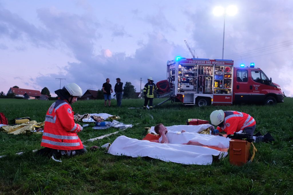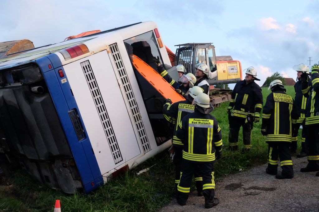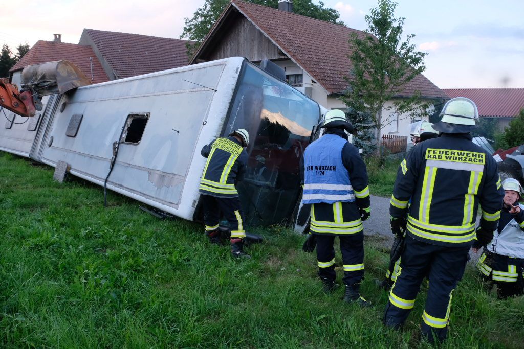 Aus Diskretionsgründen fand die Übung direkt vor der Haustüre des Wurzacher Kommandanten Rolf Butscher auf dem Ziegelbacher Greut statt. „Wir wollten den üblichen Gaffer-Tourismus vermeiden“, begründete Butscher die Entscheidung für die abgelegene Location. Für ihn selbst war die Übung dann zu Ende, als mit dem Bagger der Bus auf die Seite gekippt wurde und kurz bevor die Rettungskräfte am Ort des Geschehens eintrafen: Er hatte zwei Tage lang alle Vorbereitungen, wie etwa den Bus an die Unfallstelle zu transportieren, geleitet. Die Leitung der eigentlichen Übung überließ er seinen Stellvertretern und fungierte nur noch als Beobachter.