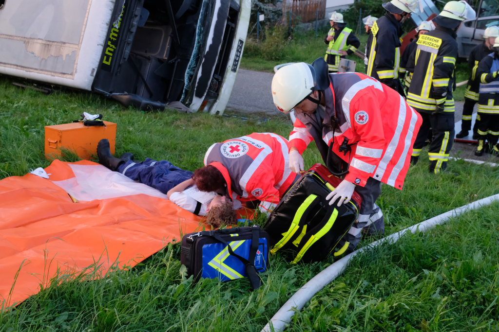 Das Szenario, Schulbus fährt in den Graben, kippt auf die Seite und blockiert damit die Ausgänge, so dass Fahrer und etwa 15 Kinder und Jugendliche sich nicht selbst aus dem großen Gelenkbus befreien können, was umso lebensbedrohlicher wird, weil das Fahrzeug droht, Feuer zu fangen.