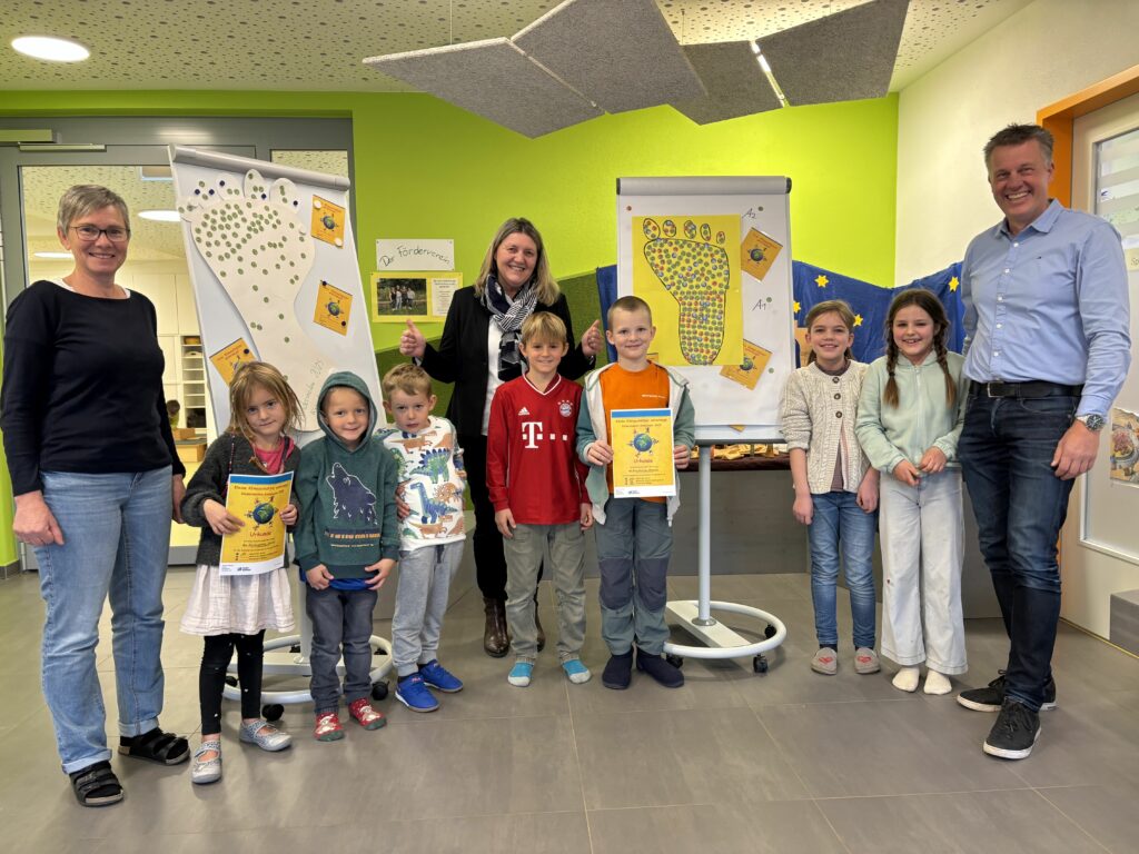 Diese erhielten die Kinder in Form von Aufklebern: grüne Meilen für alle klimafreundlich zurückgelegten Wege – also zu Fuß, mit Roller oder Rad oder per Bus – rote Meilen für die Verwendung regionaler Lebensmittel und blaue Meilen für Energiesparen. Als Dankeschön für die gesammelten Kindermeilen erhielten die Kinder in Arnach und Ziegelbach im Rahmen einer symbolischen Übergabe zuletzt von Bürgermeisterin Alexandra Scherer Dankesurkunden.