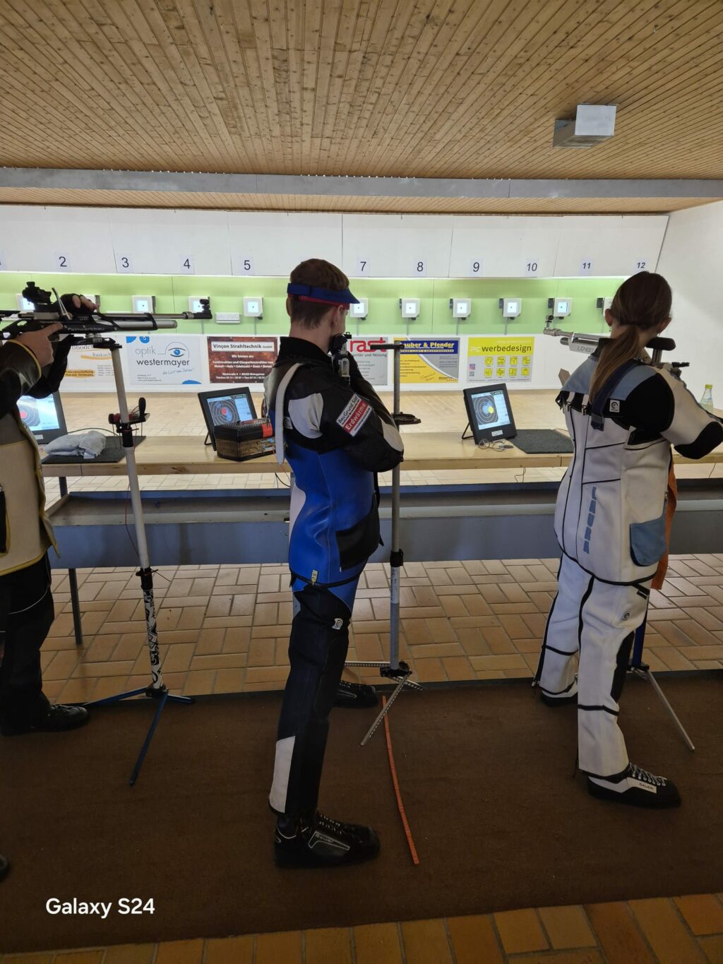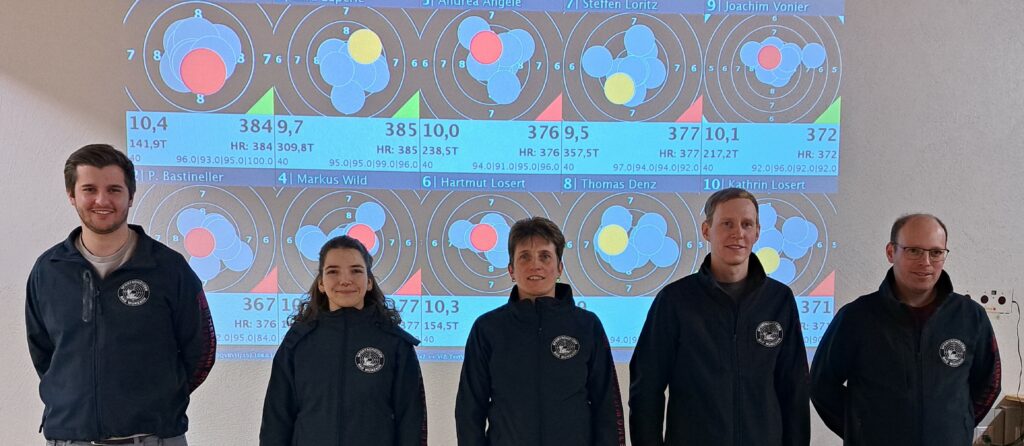 Die zum Kreis Tuttlingen gehörenden Schützen lieferten dem Gastgeber einen äußerst spannenden Wettkampf. Jan Mennig (380:395) musste sich klar geschlagen geben. Nach 381:381 Ringen musste Lara Euperle ins fünfmalige Stechen, bei 9,5 : 9,4,/10,4 : 10,0/9,9 : 9,0/9,2 : 9,2/ verdiente sie den schwer erkämpfen Zähler mit 9,5 : 9,0 um fünf Zehntel. Mit knappen drei Ringen behielt Steffen Loritz (370:367) die Oberhand. Gegen den Aixheimer Ersatzschützen hatte Joachim Vonier (361:290 ) ein leichtes Duell erwischt.