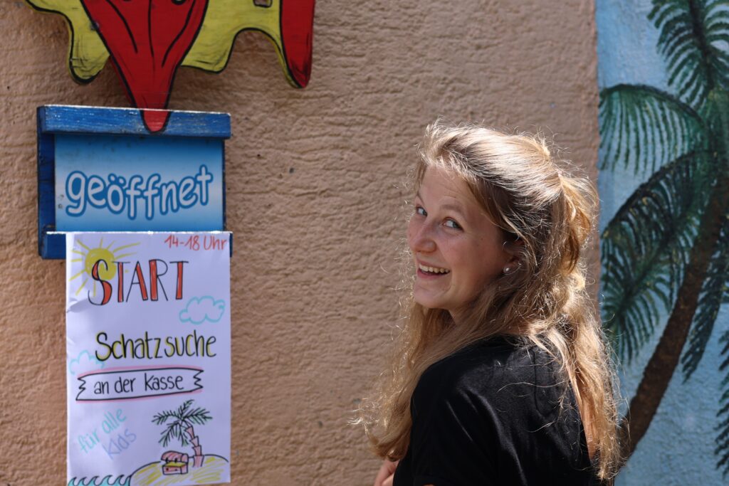 Kleine Besucher waren auf den Inhalt der Schatztruhe gespannt. Aber das Zahlenschloss ließ sich nicht so leicht öffnen: Vorher waren einige Aufgaben zu lösen.