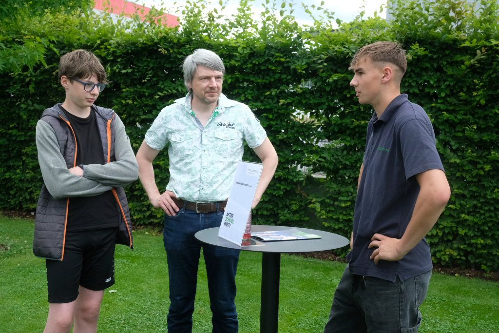 Bad Wurzach – Nach der im Vorjahr aufwendig gestalteten „EM der Berufe“ veranstaltete  der zweitgrößte Arbeitgeber in Bad Wurzach, die Firma BauGrund Süd, heuer eine After-School-Party; am Freitag, 27. Juni, stellten Geschäftsführer Alois Jäger und sein Team jungen Leuten diversen Berufssparten in seinem Unternehmen vor. Alois Jäger nahm sich an diesem Tag viel Zeit für die Gäste.