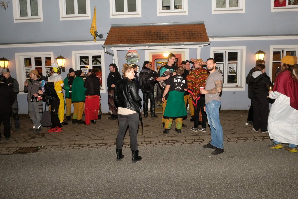 Dessen Hotspots mit Sicherheit zum einen der nur für diese Nacht geöffnete Dudelsack war, der sich in der Deko wie die Heimstätte der Blues-Brothers präsentierte. Dort tummelten sich die wilden Wikingerinnen vom Reischberg, aber auch Hexen light, die mit ihrem Federn umkränzten Haar eher wie Elfen wirkten. Und er war auch Treffpunkt vieler Gruppen aus den Ortschaften. Drinnen war es richtig voll, so dass viele Narren sich auch noch auf der Straße davor zu den Rauchern gesellten.