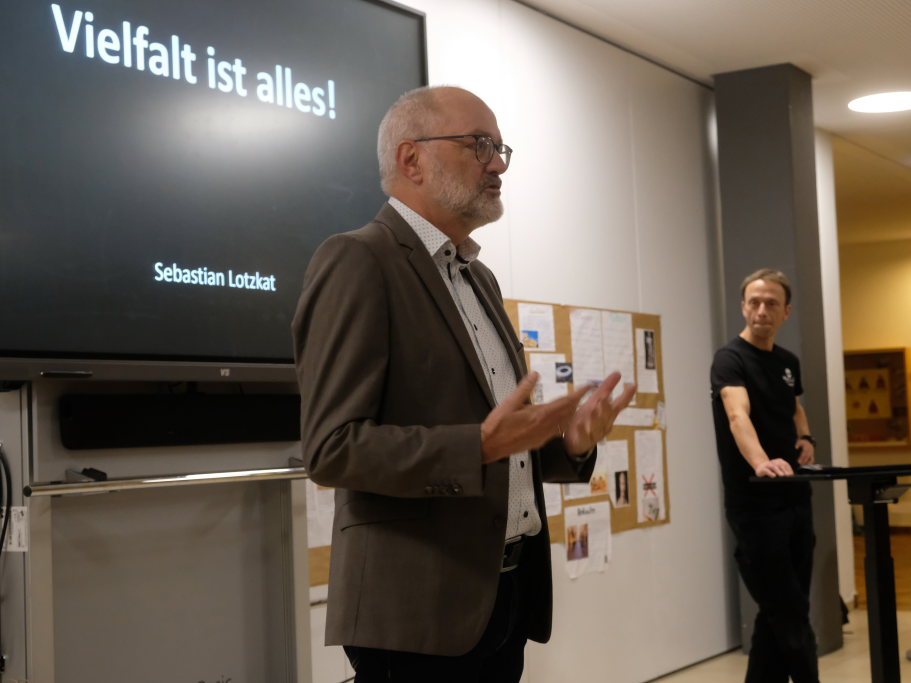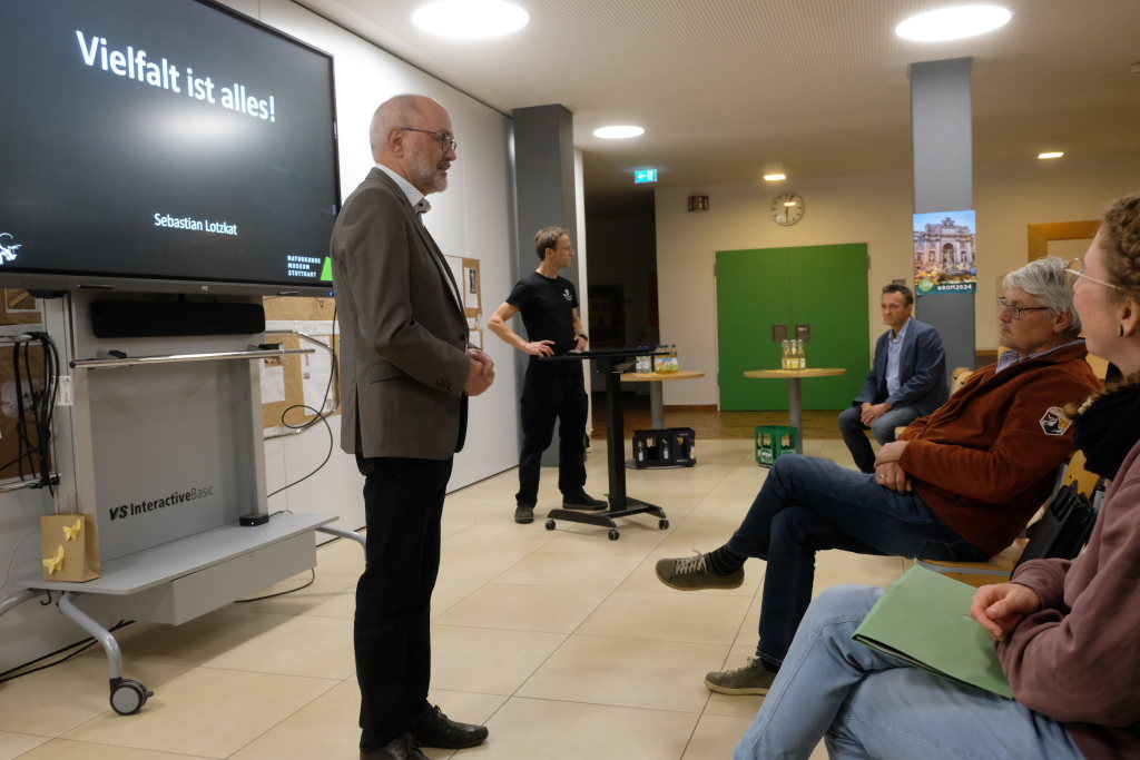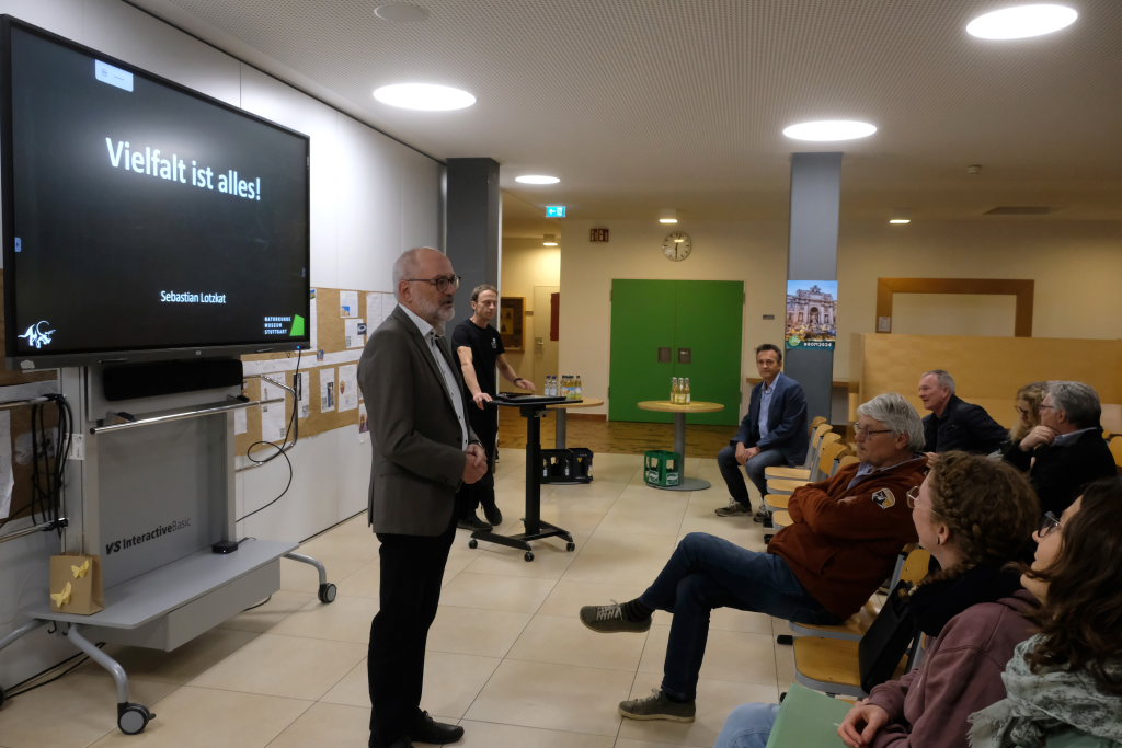 Ein Science-Slammer präsentiert Wissenschaft in einem modernen Gewand. Beim Science-Slam verwandeln sich „normale“ Wissenschaftler in Slammer. In einer fulminanten Atmosphäre präsentieren sie auf unterhaltsame Art die wissenschaftlichen Ergebnisse ihrer Forschungen und treten dabei in einer Art Wettbewerb gegeneinander an. Das Publikum entscheidet dann, wem es am besten gelungen ist, Unterhaltung und Erkenntnisgewinn zu vereinen. Lotzkat hob in seinem unterhaltsamen Vortrag „Vielfalt ist alles“ hervor, dass das was die Evolution in Milliarden von Jahren hervorgebracht hatte, nämlich eine ungeheure Artenvielfalt in sich ständig weiterentwickelnden Lebensräumen. In den wenigen Jahrtausenden kultureller Evolution droht diese nun von einer einzelnen Spezies, dem sogenannten Homo sapiens, zerstört zu werden.