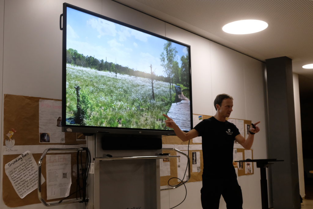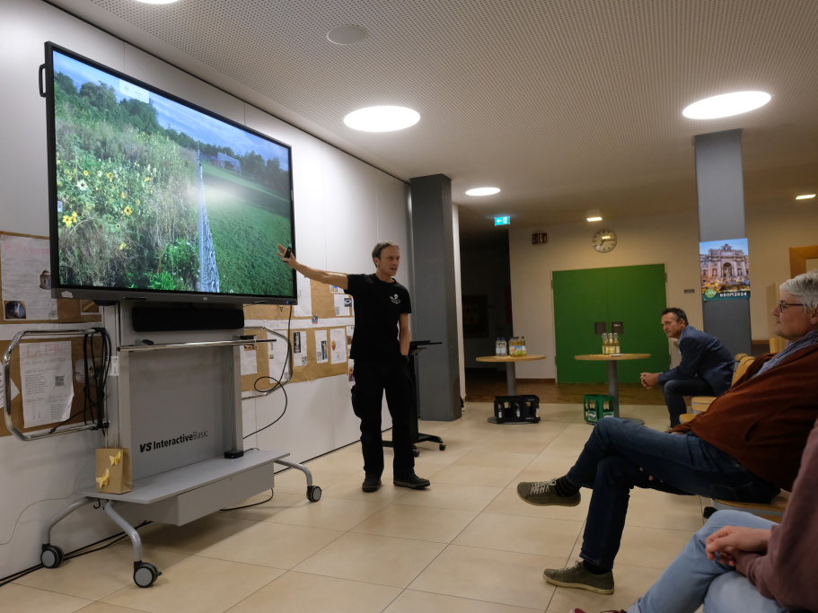 Was Jedermann selbst zum Erhalt der Artenvielfalt beitragen kann, auch dafür nannte Lotzkat einige Beispiele. Etwa statt großer Rasenfläche eine Wildblüherwiese. Er zeigte dies in einem Beispiel aus seinem direkten Wohnumfeld im Bild: jenseits seines Zaunes sorgte ein Rasenroboter immer für einen kurz geschnittenen Rasen. Ja, bis der Rasenroboter streikte und sich die Natur wieder holte, was zur Artenvielfalt gehört. Ein gutes Beispiel sei die Begrünung von Dächern: nicht nur von Hausdächern, sondern auch von anderen Flächen.