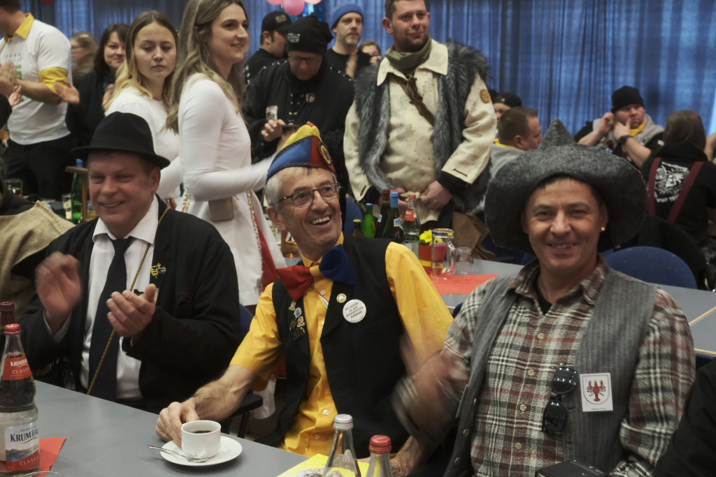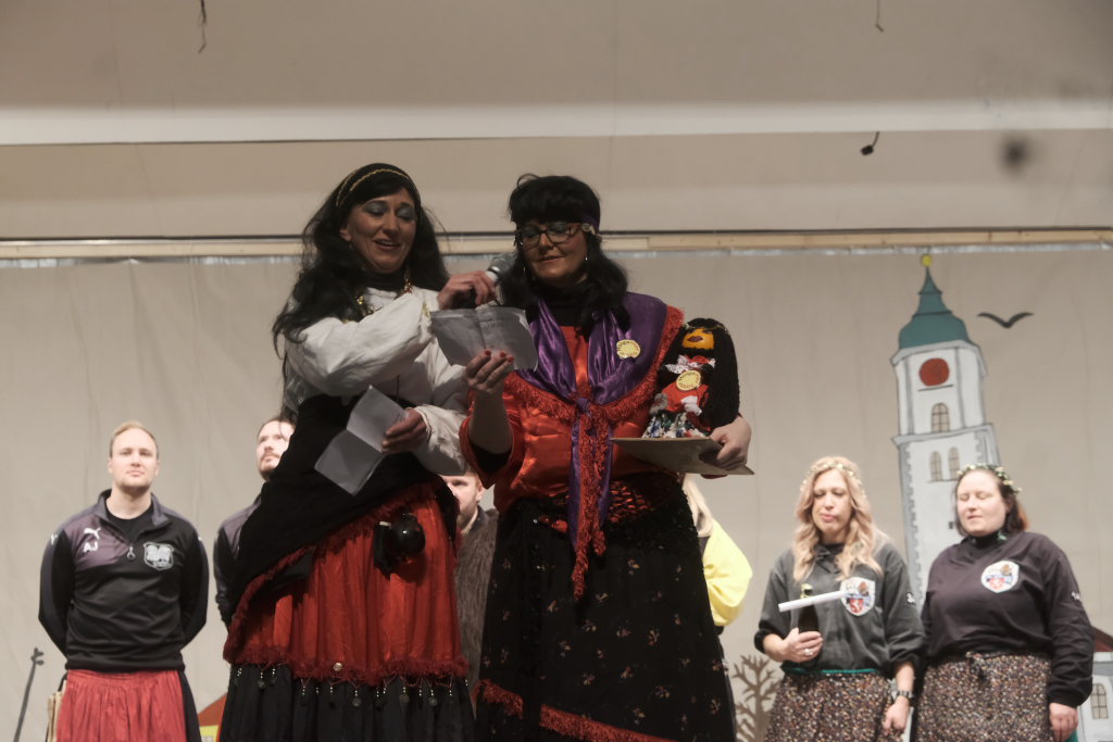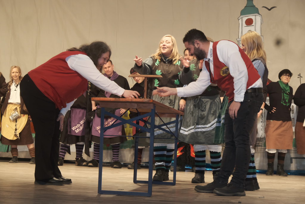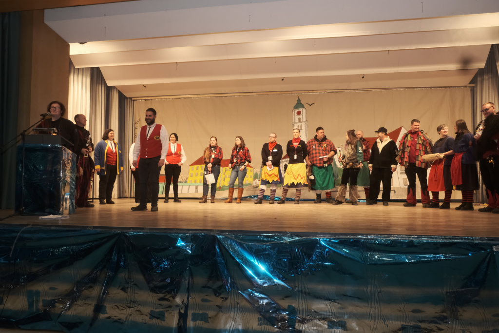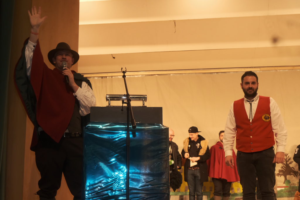 Zwar hörte man ihrer Stimme die Strapazen dieser ach so kurzen Fasnetssaison an, dennoch sang Sindy von den Altusrieder Wetterhexen in beeindruckender Qualität das Hohelied auf die Wurzacher Fasnet, während der Seibranzer Zunftmeister Willi „Bu“ Butscher eine Brise Politik ins Spiel brachte, als er in seinem „Hallenlied“ deutliche Kritik über die Baubeginn-Verschiebung der Sanierung der Seibranzer Halle übte. Und die Klosterbeurer Dreckspatzen haben ein neues Lieblingstier: Exxen, wie ihre Vertreterin anhand eines zuvor vollen Glases bewies.