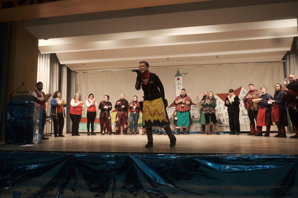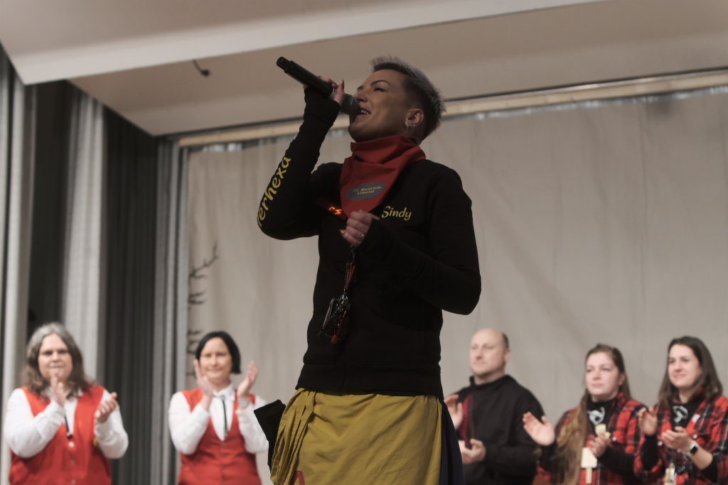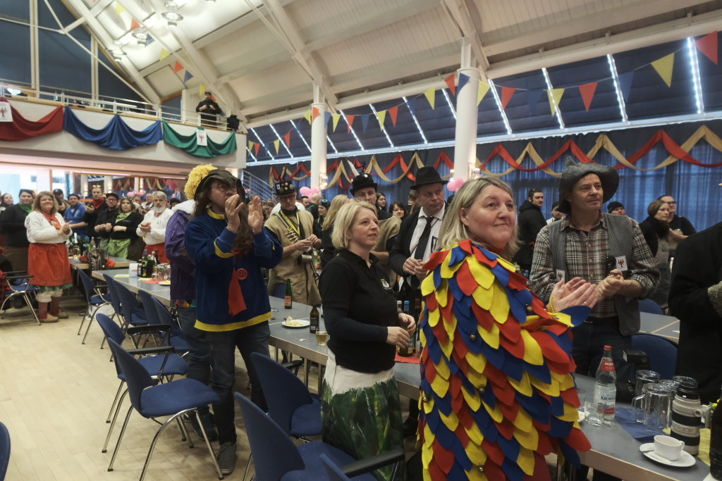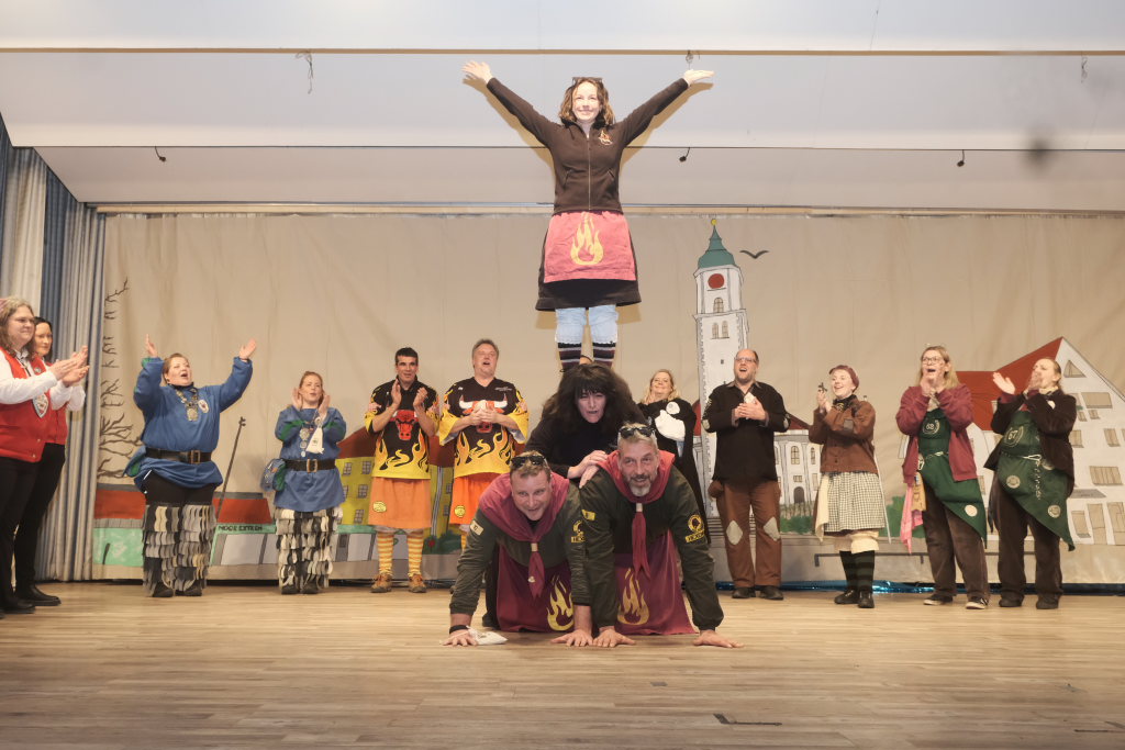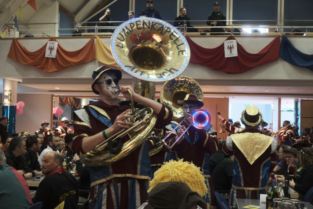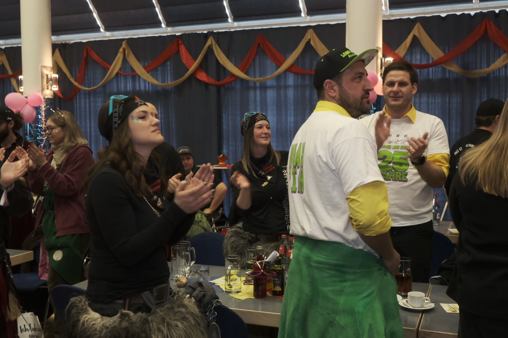 Zwar hörte man ihrer Stimme die Strapazen dieser ach so kurzen Fasnetssaison an, dennoch sang Sindy von den Altusrieder Wetterhexen in beeindruckender Qualität das Hohelied auf die Wurzacher Fasnet, während der Seibranzer Zunftmeister Willi „Bu“ Butscher eine Brise Politik ins Spiel brachte, als er in seinem „Hallenlied“ deutliche Kritik über die Baubeginn-Verschiebung der Sanierung der Seibranzer Halle übte. Und die Klosterbeurer Dreckspatzen haben ein neues Lieblingstier: Exxen, wie ihre Vertreterin anhand eines zuvor vollen Glases bewies.