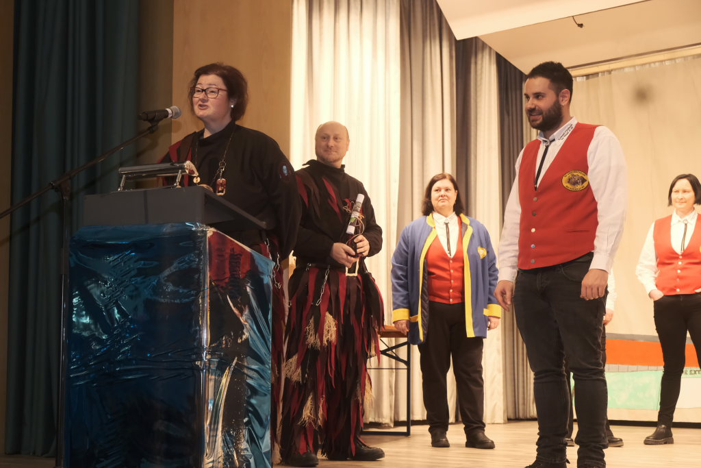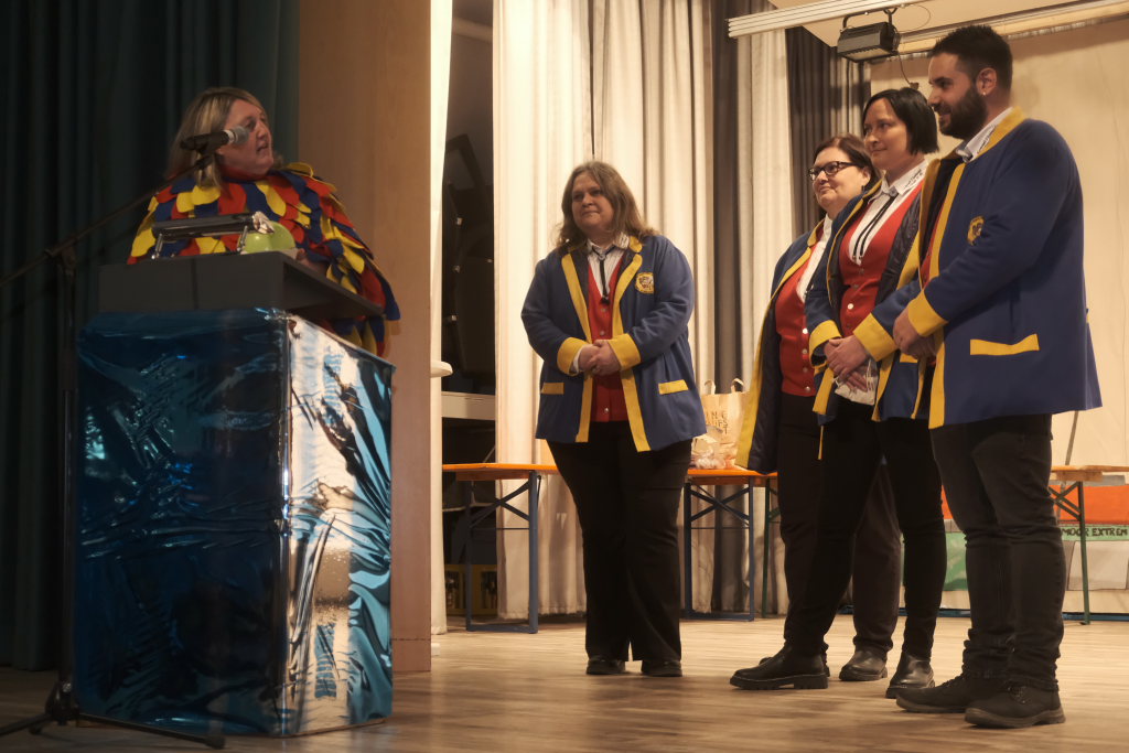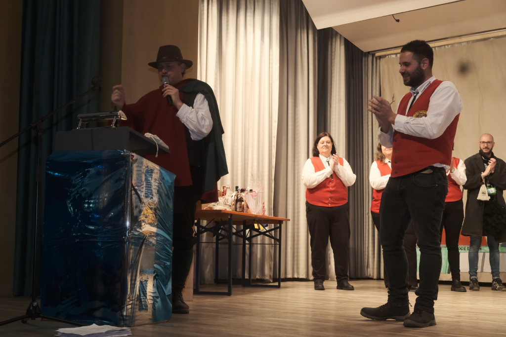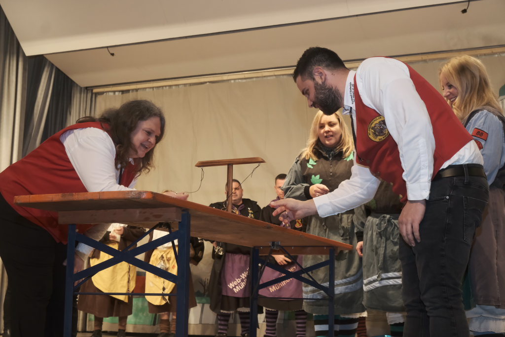 Zunftmeister Dominic Neher bedankte sich, bevor die ersten Zunftmeister auf die Bühne gerufen wurden, bei seiner Vizezunftmeisterin Nicole Stehmer, die ihm sehr viel an Arbeit abnimmt, mit einem Blumenstrauß.