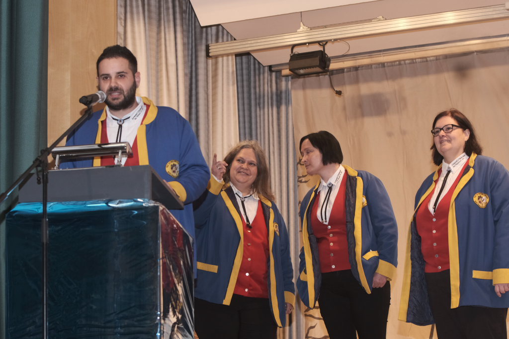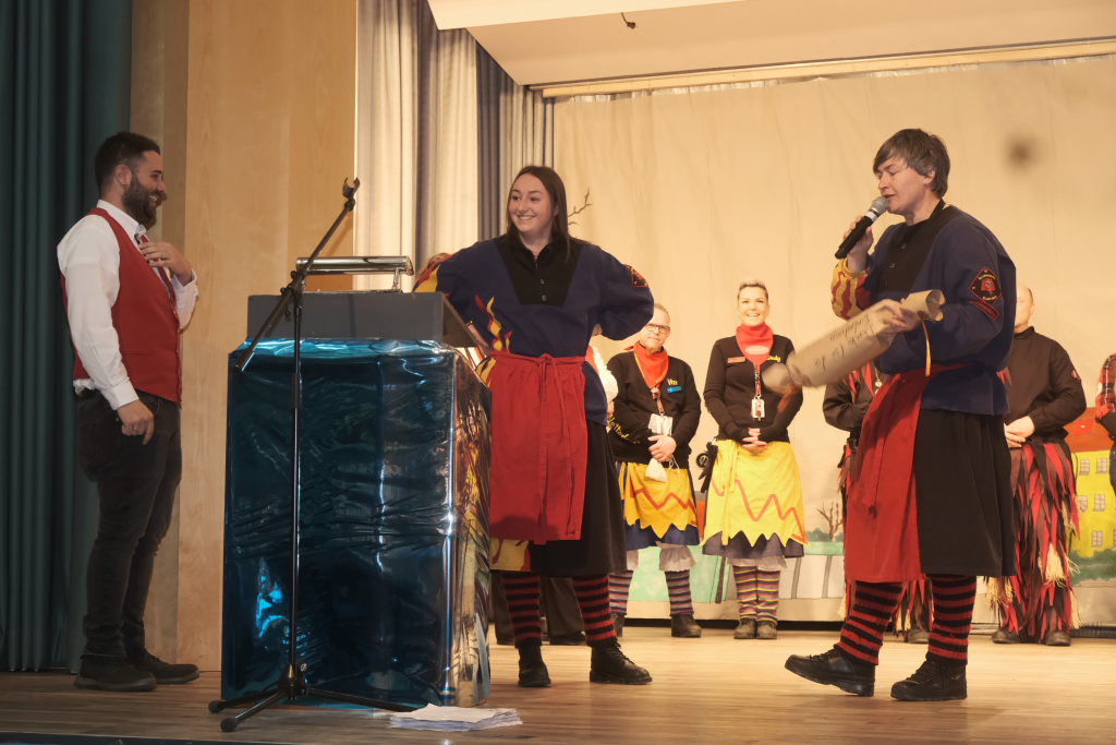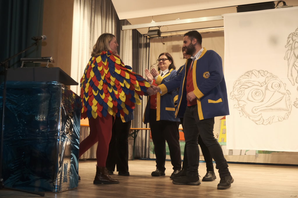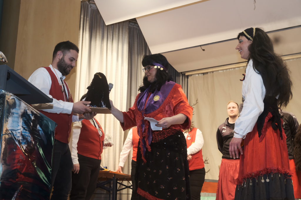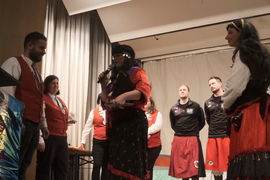 Zunftmeister Dominic Neher bedankte sich, bevor die ersten Zunftmeister auf die Bühne gerufen wurden, bei seiner Vizezunftmeisterin Nicole Stehmer, die ihm sehr viel an Arbeit abnimmt, mit einem Blumenstrauß.