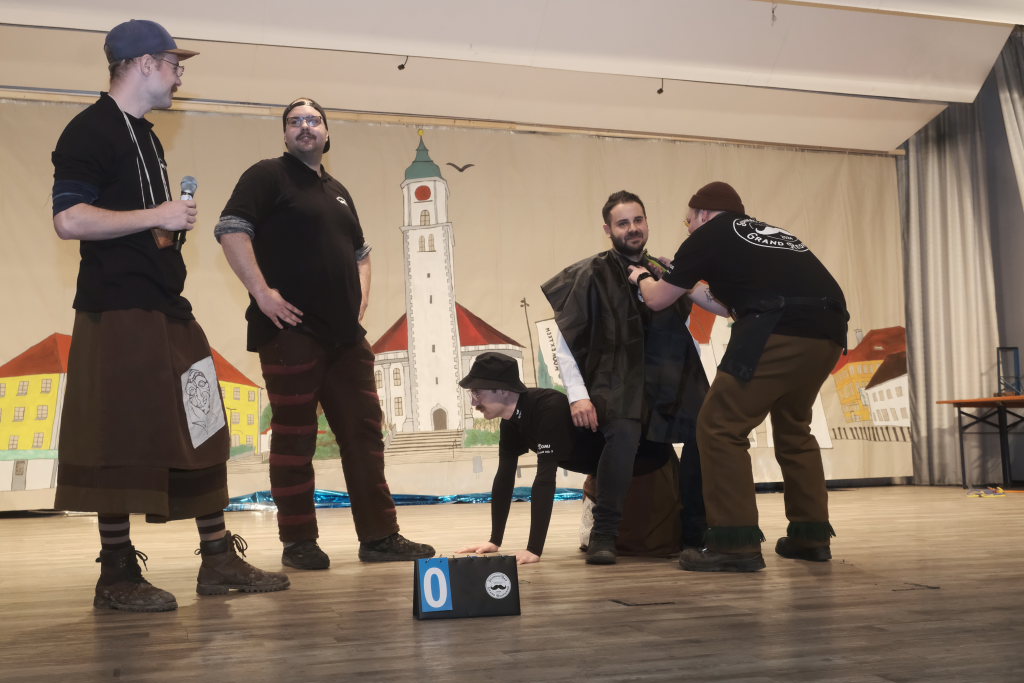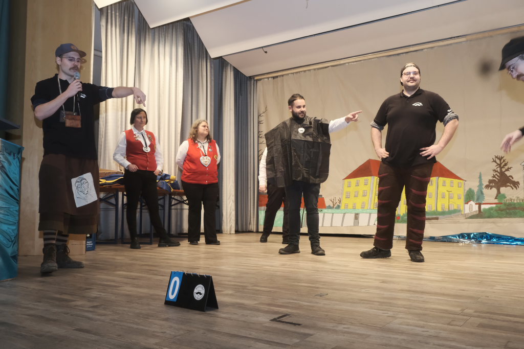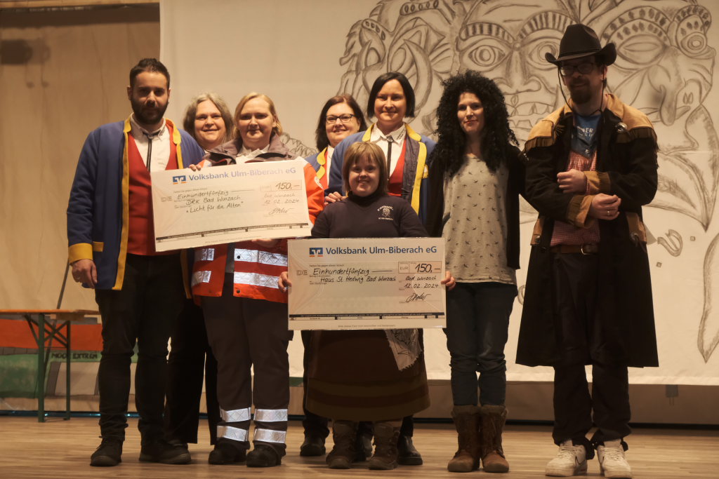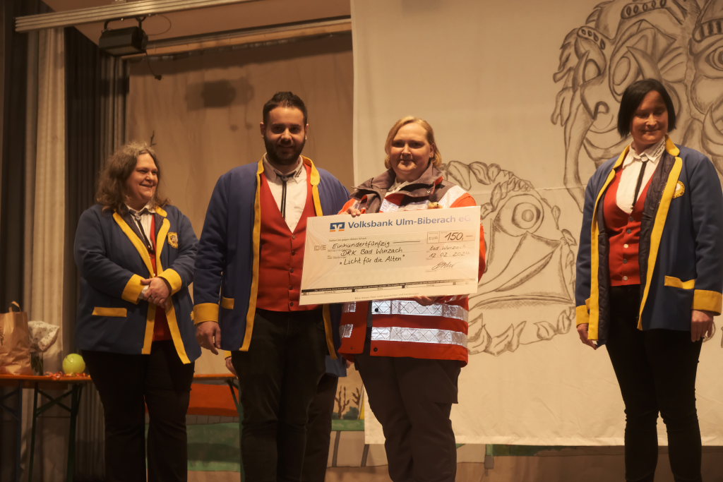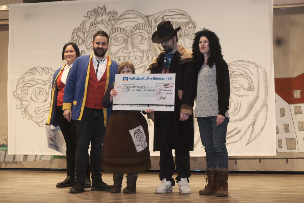 Die Memminger Stadtbachhexen ließen Wurzachs Schriftführerin Margit Rothenhäusler beim Ringespiel gegen ihren Chef antreten; für jeden in den 30 Sekunden erreichten Ring gab es eine 10 € Spende als Motivation.