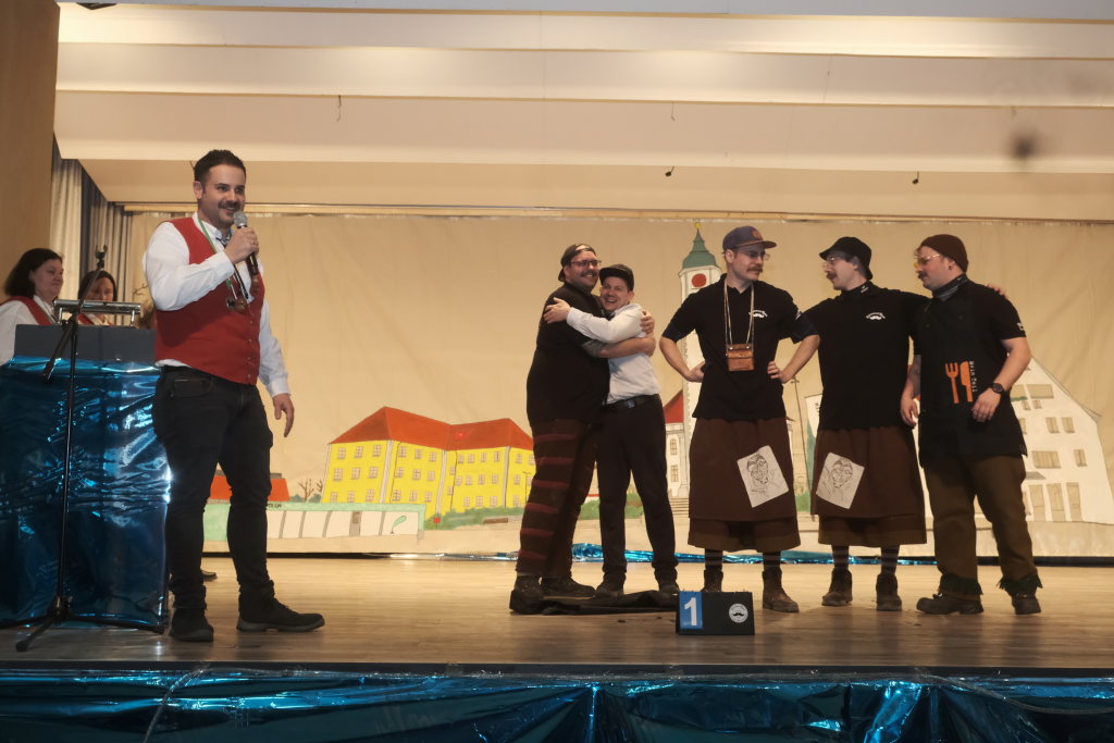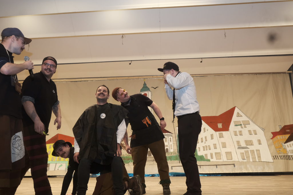 Eine peinliche Beichte hatte Dominic Neher kurz vor Schluss noch zu machen: Die Stadtkapelle, die traditionell als Nr. 1 den Umzug anführt, die hatte er vergessen, auf die Bühne zu holen. Deswegen wurden deren Vertreter von einem sichtlich zerknirschten Neher als Letzte doch noch auf die Bühne gerufen. Doch damit war der diesjährige Zunftmeisterempfang noch nicht zu Ende.