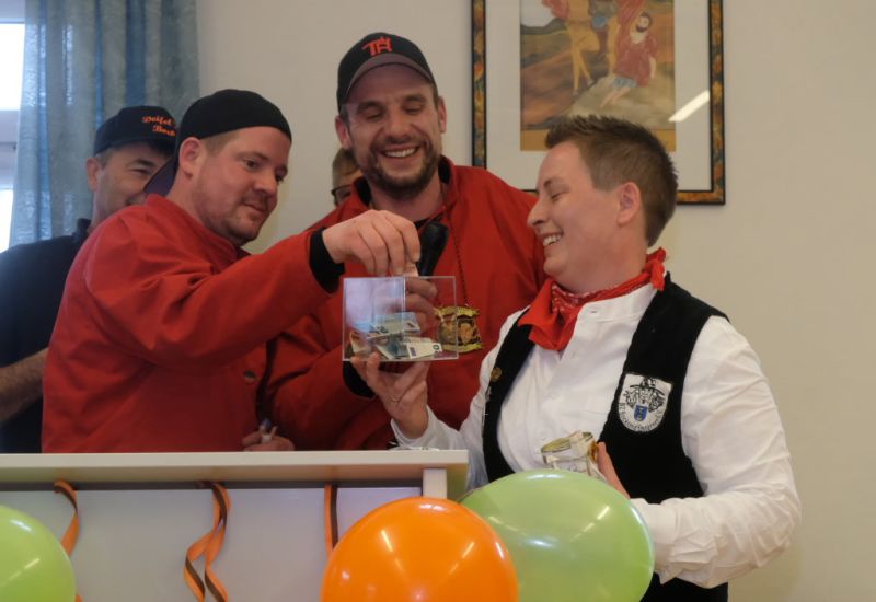 Gemeinsam mit ihrem Vize Ewald Bodenmüller konnte sie pünktlich um 14.30 Uhr die Vertreter der anderen Zünfte begrüßen. Sie erklärte gleich zu Beginn die Modalitäten für diesen speziellen Empfang. Wie die Narrenzunft bereits in der Einladung geschrieben hatte, wollte sie, dass die Zunftmeister auf Gastgeschenke verzichten sollten. Stattdessen wurde die Zunftmeisterin trotz aller lockerer Stimmung kurz ganz ernst: Lieber sollten großzügige Spenden für die Aktion „Lichtblick für Familien“ in Wangen gegeben werden. Ein Obolus werde auch fällig, wenn einer der Redner anfange, über Banalitäten wie das Wetter zu quatschen oder sich für die Einladung zu bedanken. Der Aufruf erbrachte eine Saalspende in Höhe von 611,70 €.
