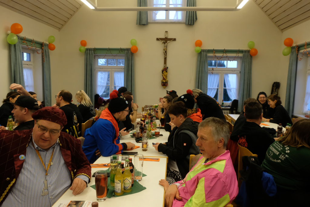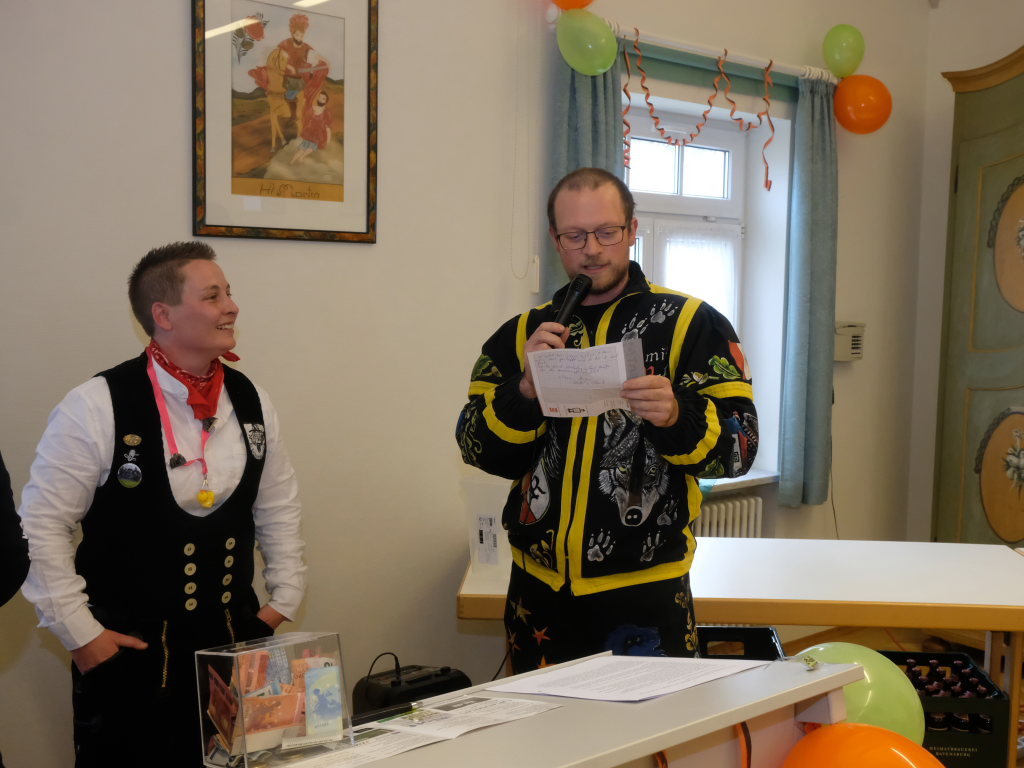 Die Pflichten waren denn auch schnell abgearbeitet, und so konnte Ewald Bodenmüller auch kurz danach den Kollegen aus den Reihen der Zunftmeister stolz das KI-generierte Eintürner Narrenlied vorspielen. Aber nicht nur das: Auch ein eigenes Gedicht hat die Narrenzunft “Bockland” Eintürnen jetzt vorzuweisen, dass – ebenfalls im Rahmen des Zunftmeisterempfangs – von Diana Tant vorgetragen wurde.