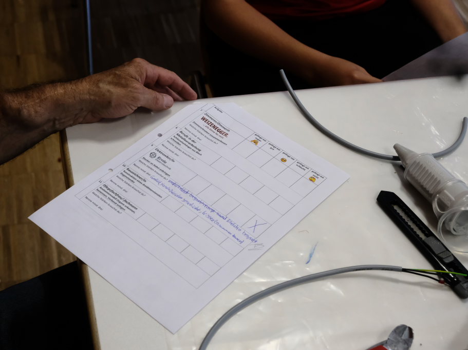 Beim Berufsbild von Bankkaufleuten mussten die Schüler ein Überweisungsformular ausfüllen, eine Übung, die später – wie etwa auch ein offizielles Anschreiben zu verfassen – für jeden zum Alltag gehören wird. Mit Hilfe eines Laufzettels reflektierten die Schüler ihre Fähigkeiten, mussten überlegen, welche Stärken sie für die jeweilige Aufgabe benötigten.