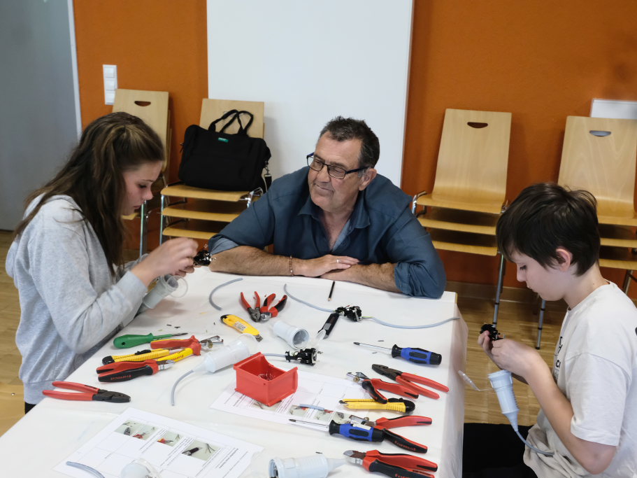 Angeleitet von Mühler selbst, einigen Lehrer der Werkrealschule sowie einigen ehemaligen Schülern konnten und sollten sich die Schüler in Vierergruppen an den 11 Stationen in unterschiedlichen Berufen ausprobieren.