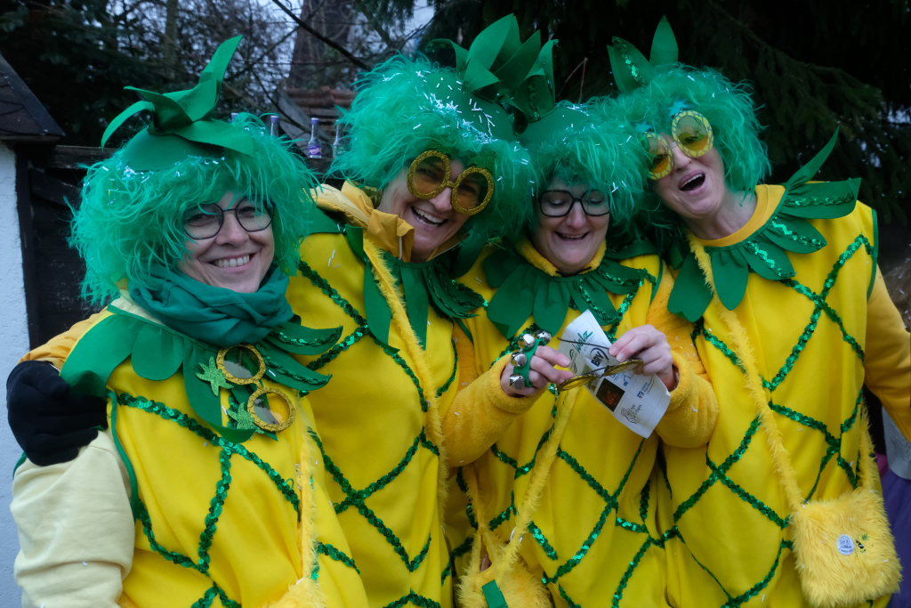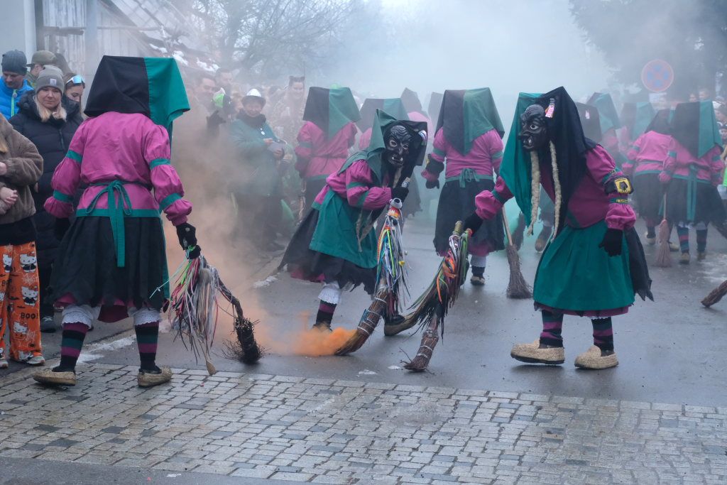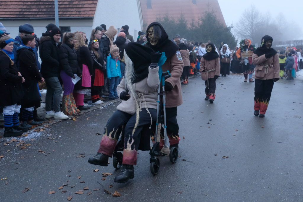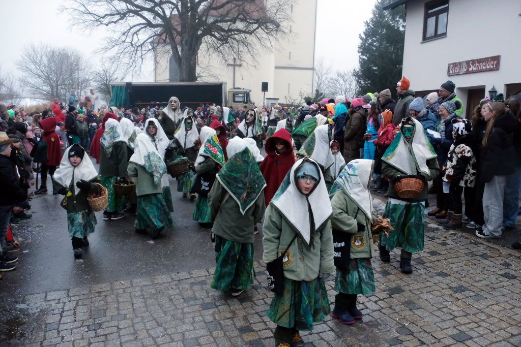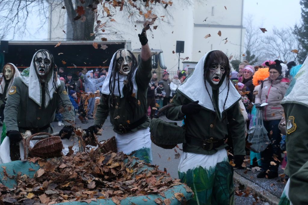 Dazu bereicherten viele Zünfte aus der Region wie Immenried, Alttann, Wolfegg, Waltershofen oder Aichstetten das närrische Geschehen auf den Straßen von Arnach. Erstmals in dieser Saison auf den Umzügen zu sehen sind die „Krähen“ aus Diepoldshofen mit ihrem Narrenspruch „D´Kräh isch munter – Tanzlaub goht unter“.