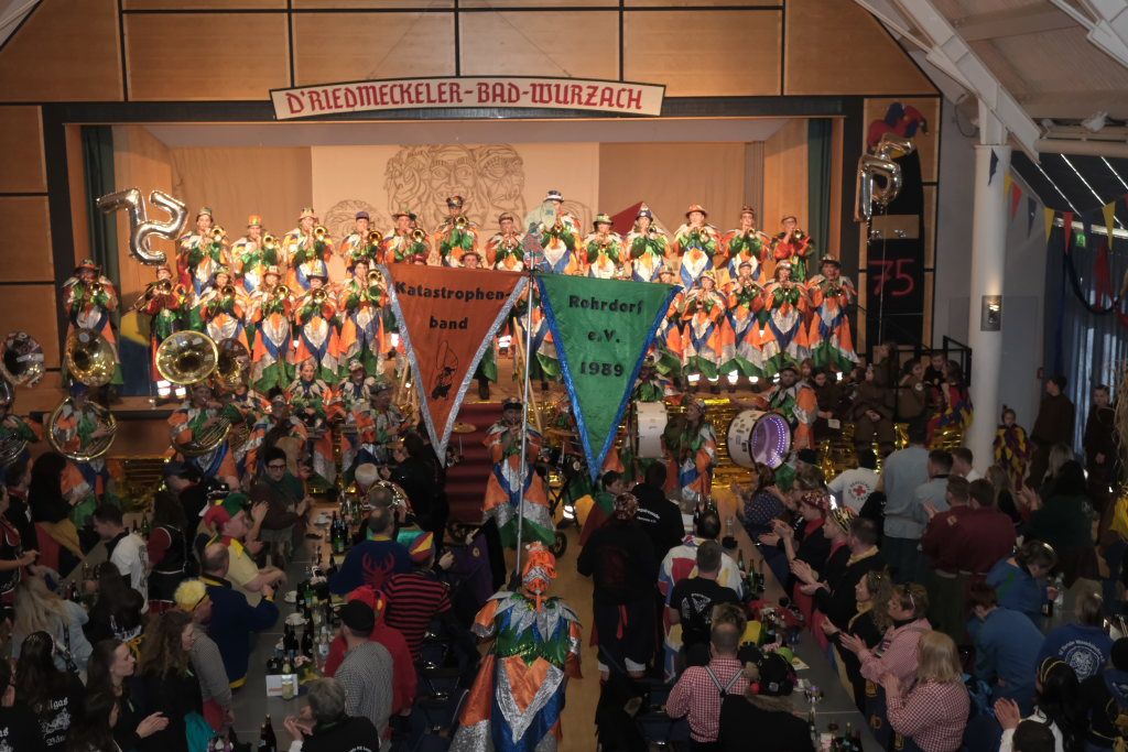Bad Wurzach – Die Katastrophenband Rohrdorf in ihren venezianisch anmutenden Häsern eröffnete den diesjährigen Zunftmeisterempfang im Kursaal musikalisch und sorgte gleich für beste Stimmung unter den Zunftvertretern der 87 Zünfte und 13 Musikgruppen. Das Geburtstagskind, die Riedmeckeler, honorierten aber auch Soziales Engagement.