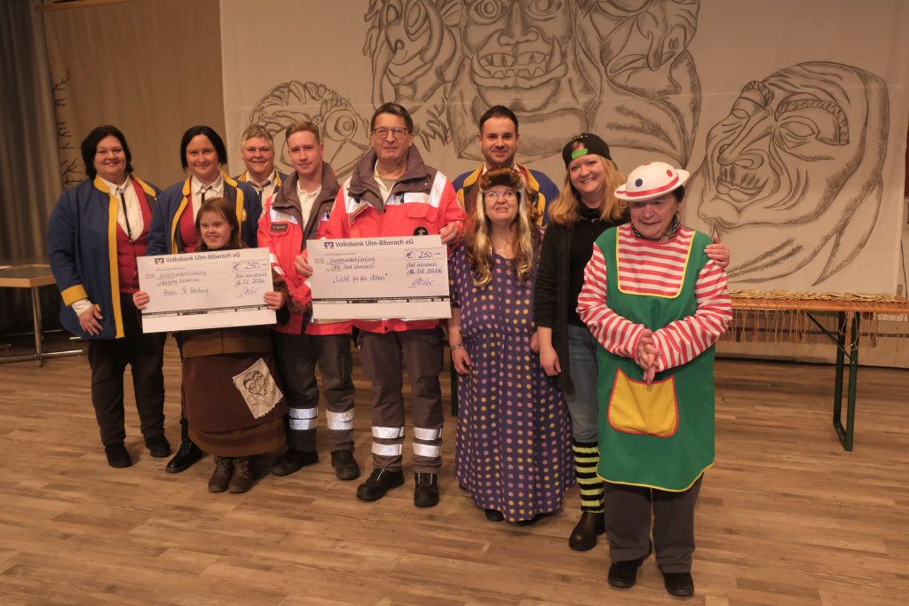 Denn bevor die ersten Zunftvertreter auf die Bühne gebeten wurden, übergaben Zunftmeister Dominic Neher und Co. jeweils einen Scheck an das Rote Kreuz Bad Wurzach als Honorierung für deren Aktion Licht für die Alten und an das Wohnheim St. Hedwig, dem die Narrenzunft eng verbunden ist. Denn die Zunft spendet das Geld lieber für soziale Zwecke, statt es für aufwendige Gastgeschenke auszugeben.