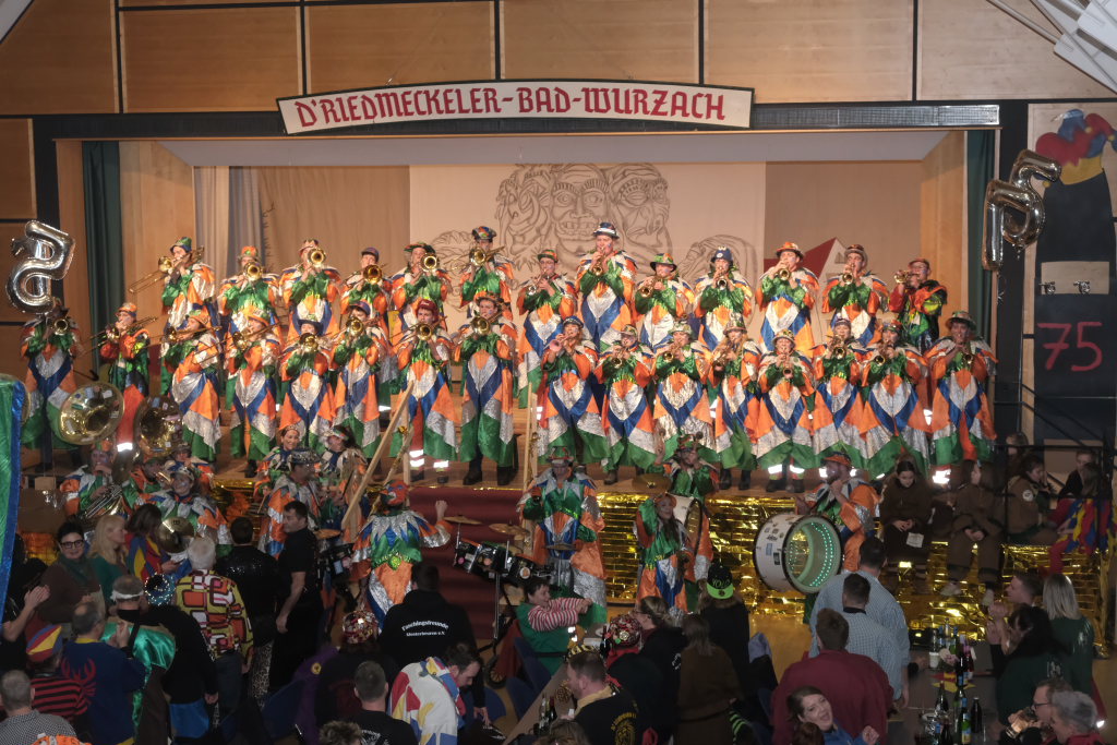 Bad Wurzach – 100 Gruppen, mehr als drei Stunden Länge, auch der diesjährige Narrensprung zum 75. Geburtstag der Riedmeckeler Zunft am Rosenmontag in Bad Wurzach geizte nicht mit Superlativen.