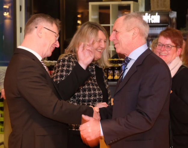 Unter “Lesen Sie hierzu auch …” finden Sie zwei weitere Berichte über den Empfang der Stadt, der von der Stadtkapelle unter der Leitung von Petra Springer und von “Mannes Sangesmannen” musikalisch umrahmt war und der wieder ein großes gesellschaftliches Ereignis war. Lange noch stand man nach dem offiziellen Teil zusammen und führte gute Gespräche.