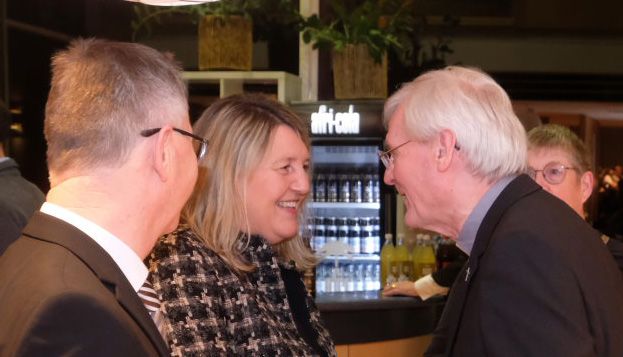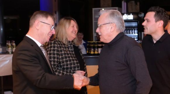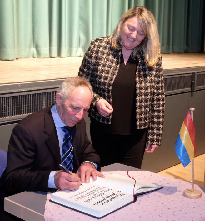 Unter “Lesen Sie hierzu auch …” finden Sie zwei weitere Berichte über den Empfang der Stadt, der von der Stadtkapelle unter der Leitung von Petra Springer und von “Mannes Sangesmannen” musikalisch umrahmt war und der wieder ein großes gesellschaftliches Ereignis war. Lange noch stand man nach dem offiziellen Teil zusammen und führte gute Gespräche.