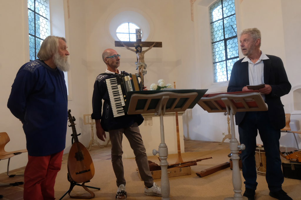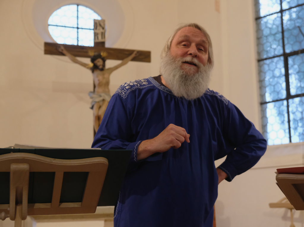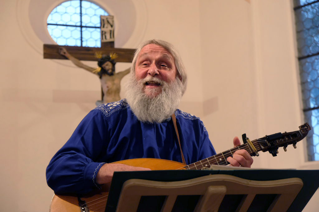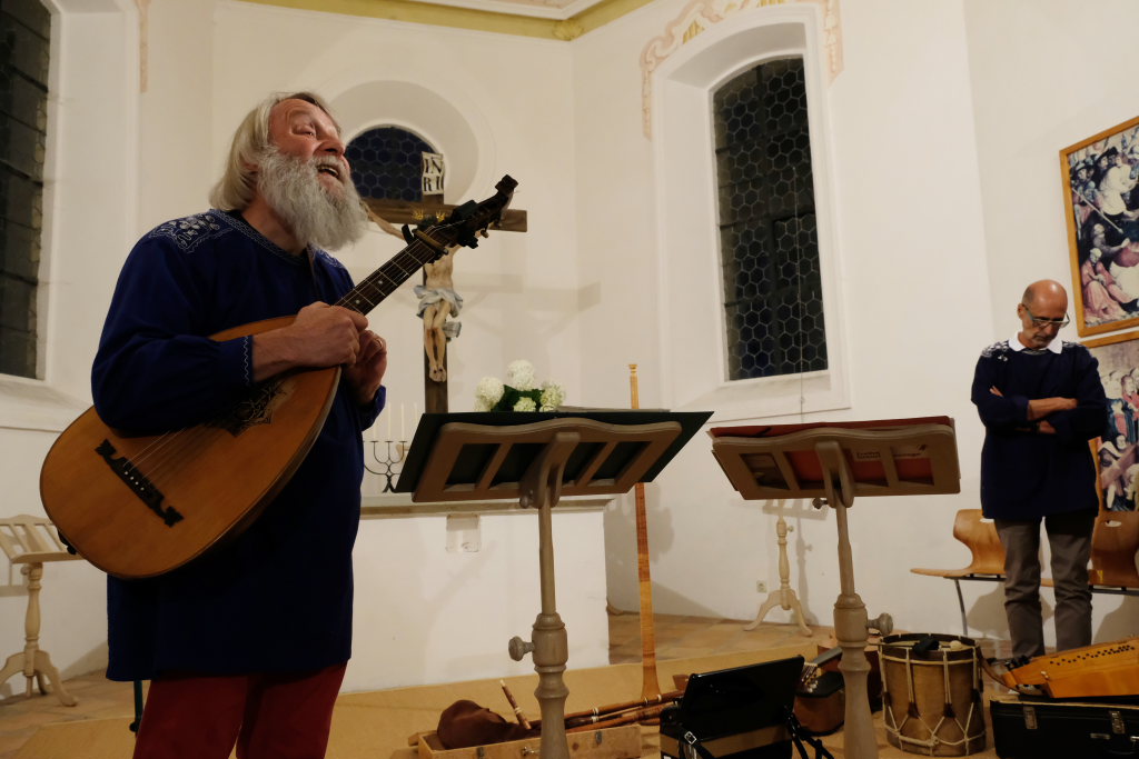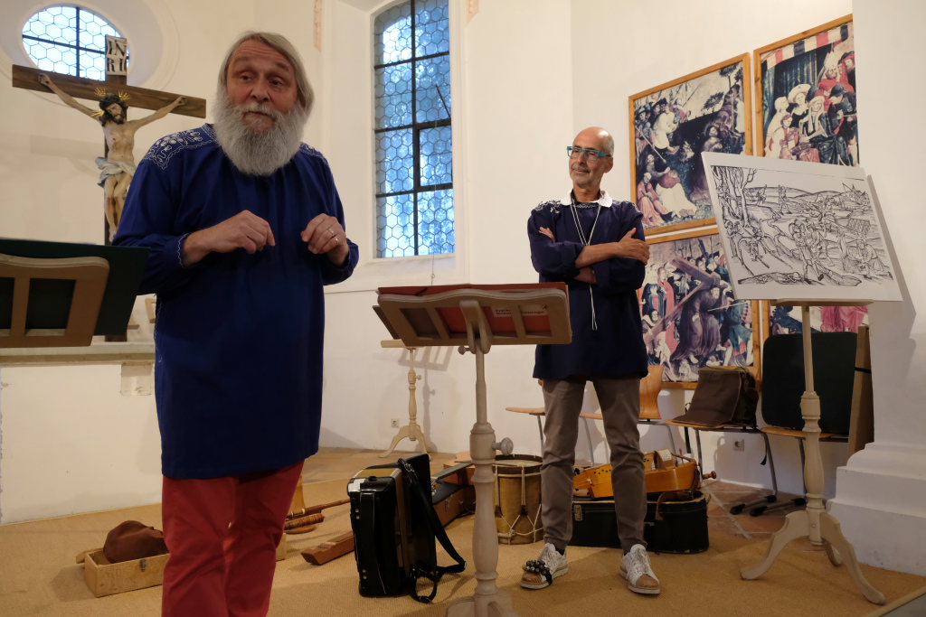 Bad Wurzach – Im Rahmen des Jubiläumsjahres 500 Jahre Bauernkrieg, zu dem es schon einige Veranstaltungen und Vorträge gegeben hatte, wurde vom Team der Bad Wurzach-Info (BWI) nun ein musikalischer Abend mit bäuerlichen Liedern aus verschiedenen Epochen angeboten. Wer könnte dafür besser geeignet sein, als die beiden in der Region sehr bekannten Barden Barny Bitterwolf und Michael Skuppin, die auch sofort die Zuhörer und Mitsänger an diesem Abend in der Leprosenhauskapelle rasch in ihren Bann zogen, nachdem Bernhard Maier, der Vorsitzende des Leprosenhausvereins, die Gäste begrüßt hatte.