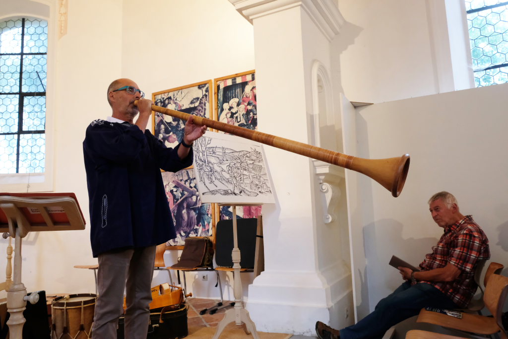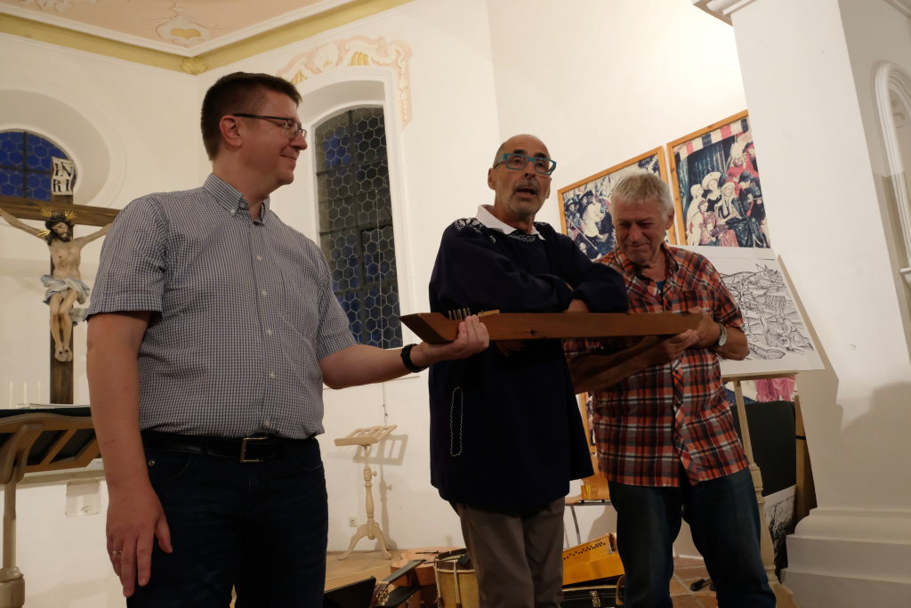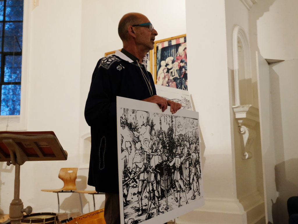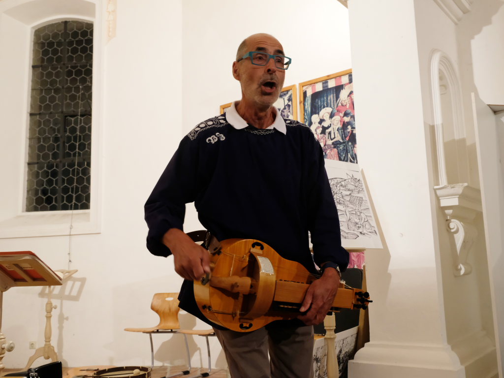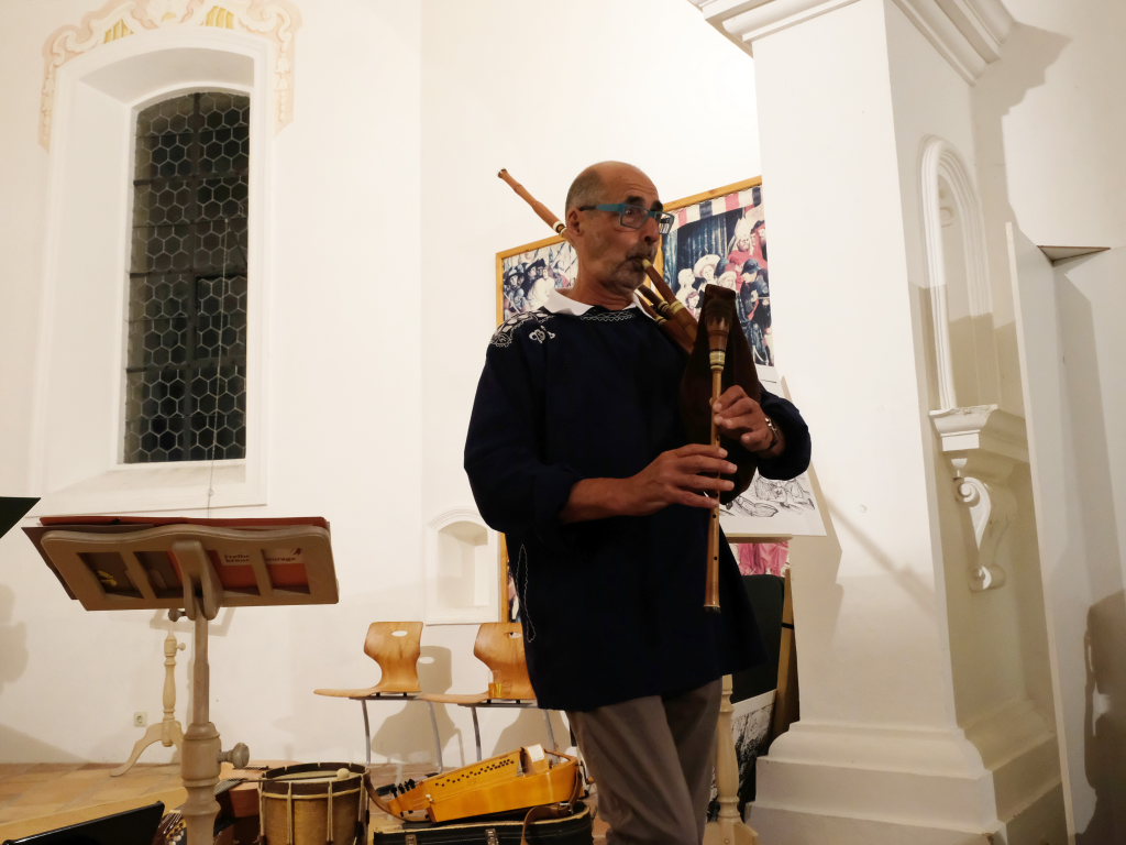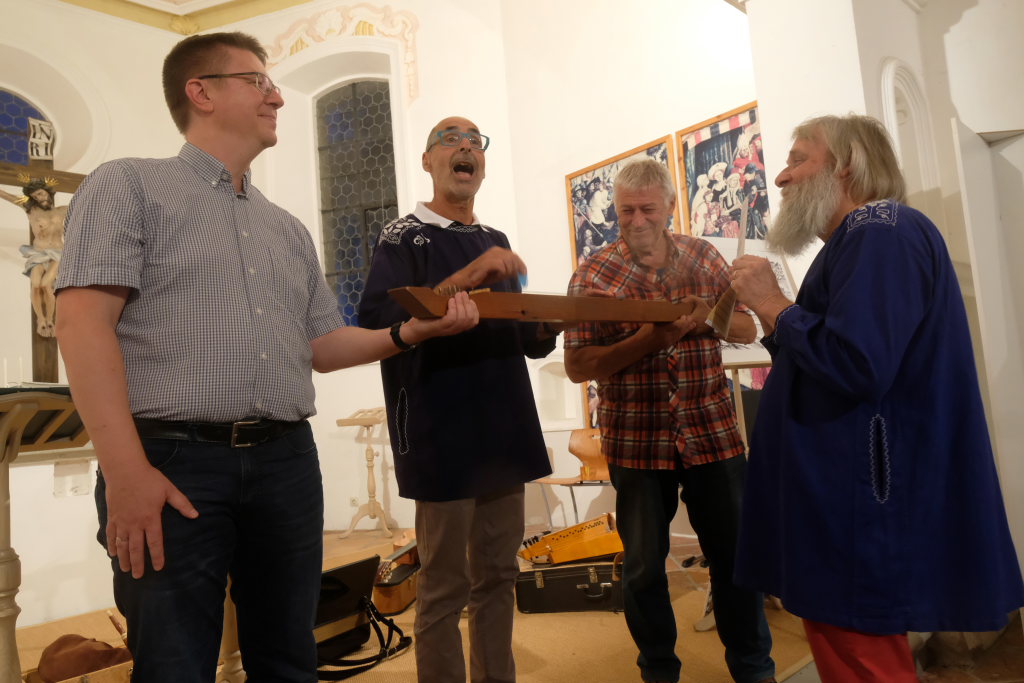 Unter den Instrumenten, die Bitterwolf präsentierte, war auch ein Vorläufer der späteren Tischzither. Um dieses Instrument zu spielen, holte sich Bitterwolf Martin Tapper, der das Konzert als Vertreter der Stadtverwaltung besuchte, sowie einen weiteren Gast, die das Instrument gut festhalten mussten. Michael Skuppin diente Bitterwolf als Notenständer. Skuppin selbst spielte unter anderem auch bei einem selbstkomponierten Lied die Laute, während Multinstrumentalist Bitterwolf auch noch das Sack– oder auch Schäferpfeifeninstrument – versehen mit dem Kommentar „Es ist immer wieder spannend, das Instrument zu spielen“ – zum Einsatz brachte.