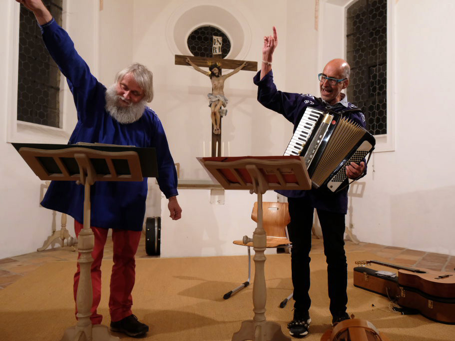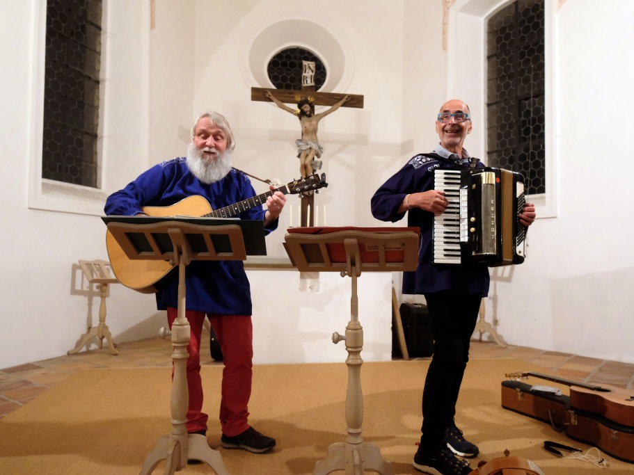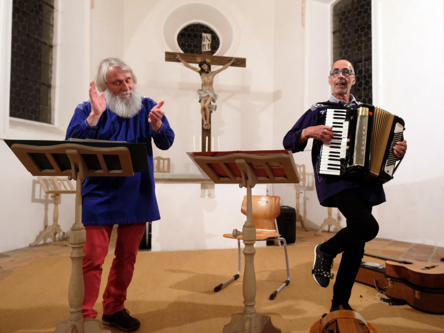 Wer könnte dafür besser geeignet sein, als die beiden in der Region sehr bekannten Barden, die auch sofort die Zuhörer und Mitsänger an diesem Abend in der Leprosenhauskapelle in ihren Bann zogen, nachdem Bernhard Maier, der Vorsitzende des Leprosenhaus-Vereins, die Gäste begrüßt hatte.