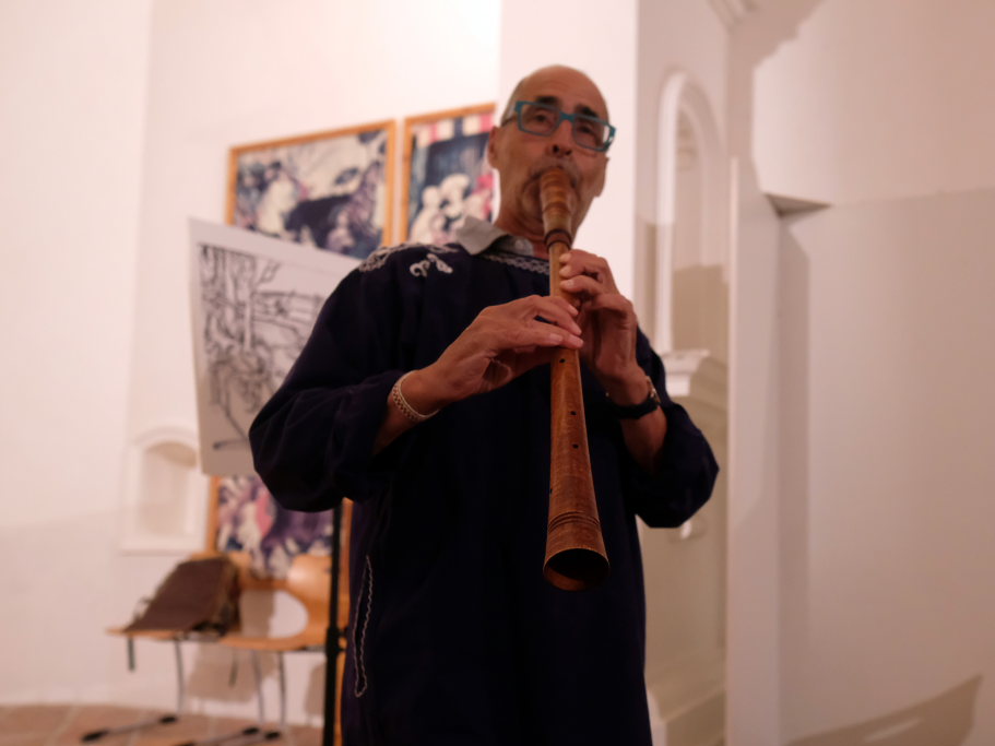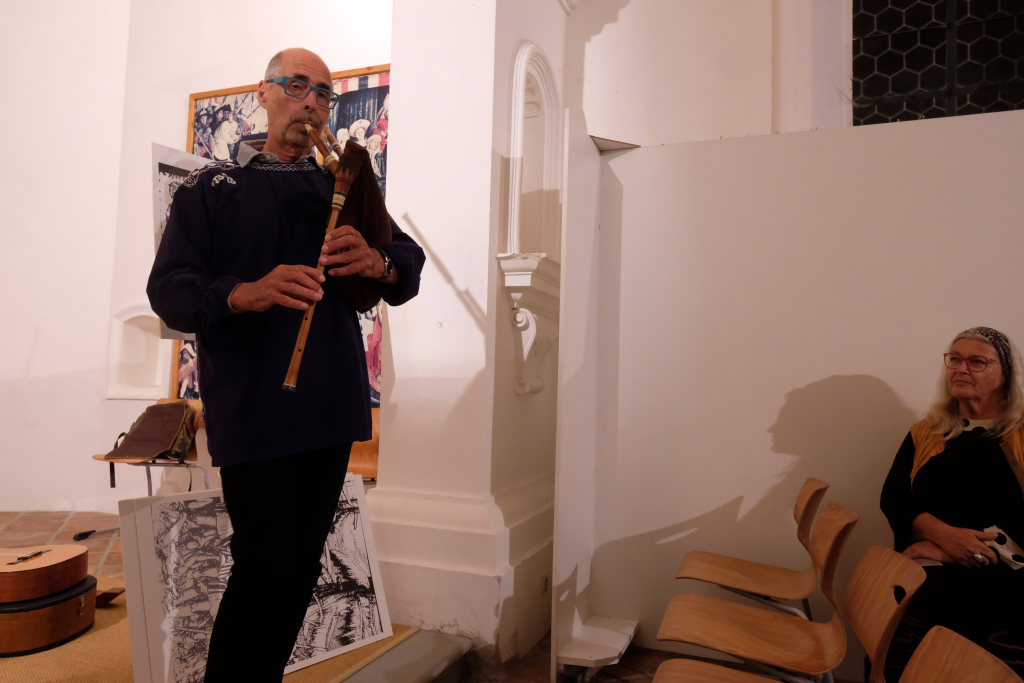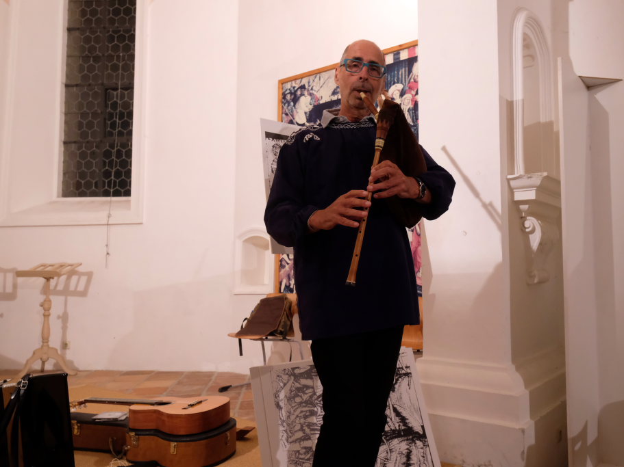 Bekleidet im bäuerlichen Alltagshäs, dem Blauhemd – oder auch Russenkittel genannt – hatten die Beiden diverse Musikinstrumente aus jener Epoche mitgebracht. Und nicht zu vergessen das aufwendig gestaltete Liederheft mit dem Titel „Für die Freiheit –Bauernlieder aus fünf Jahrhunderten“, das im Eintrittspreis mit inbegriffen war. Damit hatte jeder Besucher Gelegenheit, die von den Beiden vorgeschlagenen Lieder mitzusingen, wovon diese auch reichlich Gebrauch machten.