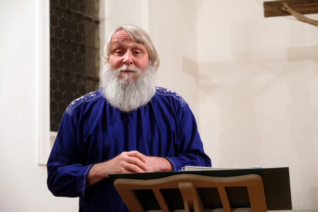 Gelesen wurde an diesem Abend auch das Bauern-Vater unser, in dem es unter anderem heißt: „geheiligt … werde Dein Name! Sie quälen ohne Ruh und Rast und schreien Bauer was Du hast: Es komme zu uns. Sie rauben, plündern immerdar, und wenn sie könnten, auch sogar –dein Reich“.