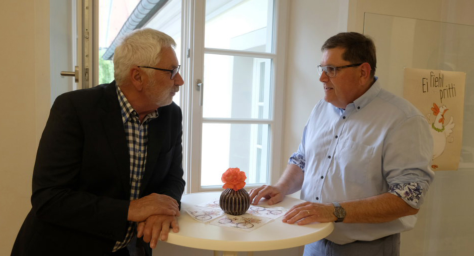 Nach der Begrüßung durch Doris Schäfer, die gemeinsam mit Christel Linge die Kunstausstellungen der Galerie in Maria Rosengarten organisiert und betreut, zeigte sich Klaus Schütt, der die Künstlerin und die Galeriebesucher im Namen der Stadt Bad Wurzach willkommen hieß, ein wenig stolz, dass die Künstlerin Claudia Wiebe ihre erste Ausstellung nach ihrer Rückkehr nach Deutschland in Bad Wurzach veranstaltet. Daher richtete er auch den Dank der Stadt an das Organisations-Duo Schäfer/Linge, das dies ermöglicht hatte.