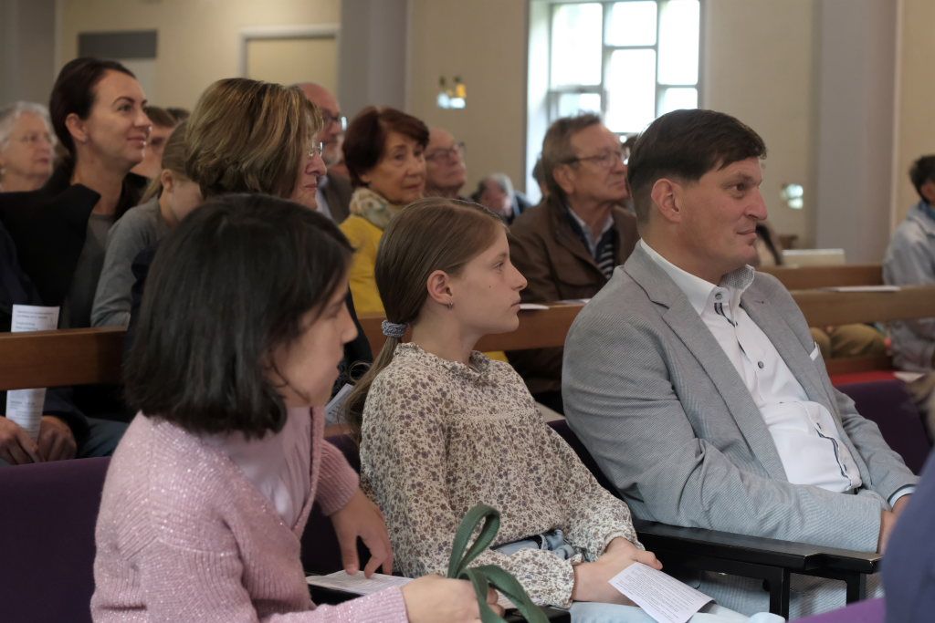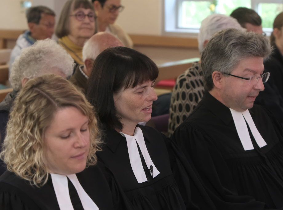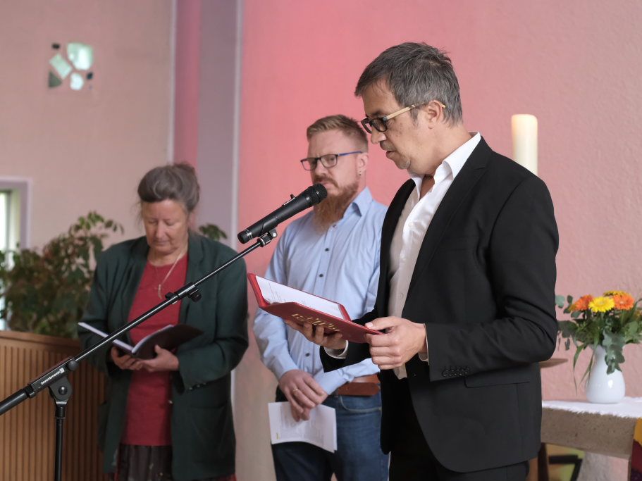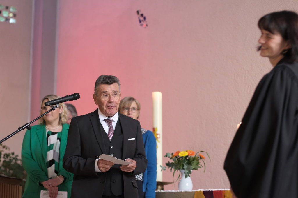Als erste Zeugin hatte Cora Boettiger die Pfarrkollegin Henrike Frey-Anthes aus Schwäbisch Hall gewinnen können, die ihr zu ihrem Amtsantritt einen Olivenbaum schenkte, dessen Früchte vielfältigste Möglichkeiten bieten. Als zweiter Zeuge trat ihr Schwiegervater Jürgen Böttiger ans Mikrofon, der sie bereits seit der gemeinsamen Schulzeit mit seinem Sohn kannte und sehr früh feststellte, dass es ihr mit dem Glauben sehr ernst war. Die dritte Zeugin war Sabine Menig, eine Religionslehrer-Kollegin, die von ihr als einem lebensfrohen und optimistischen Familienmenschen sprach. Sie habe sich sehr auf die Pfarrstelle gefreut, bekannte Cora Boettiger, aber auch Gedanken gemacht, wie sie den Spagat Pfarramt und Familie würde meistern können.