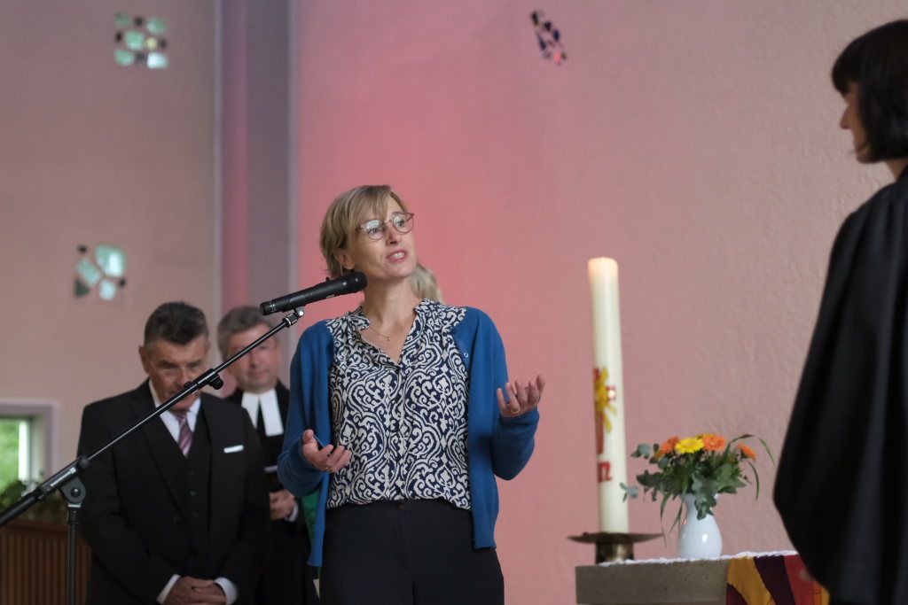 In ihrer Antrittsrede ließ sie zunächst ihre drei Töchter Margarethe, Johanna und Henriette zu Wort kommen. Diese hoben als Mutters wichtigste Eigenschaft hervor, dass sie immer jederzeit für sie da sei. Sie selbst sagte über sich, dass sie gerne lese und laufe. „Beim Laufen kommen die Gedanken in Schwung und ich treffe auch immer neue Menschen.“ Als sie nach ihrem Vikariat die Gelegenheit hatte, eine kleine Pfarrei im Hohenlohischen zu übernehmen, habe sie ja gesagt. Dort waren ihre Kinder auf die Welt gekommen.