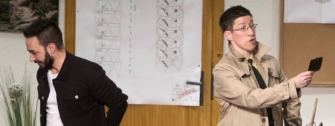 Zum Inhalt: Das Baugeschäft von Hubert Ebner, dem Jochen Jöchle mit seinem „Hopfensilo“ seine imposante Statur lieh, läuft nicht gut. Überlebenswichtige Großaufträge wie der Bau des Turmes im Ried gehen an andere Anbieter und nun steht sogar ein Insolvenzverfahren im Raum. Um dieses zu verhindern, werden viele im Geschäft kreativ: Lehrling Tommy Klein (überzeugend, rotzfrech und immer für eine Idee zu begeistern: Alexander Menig) überredet seine Chefin Brigitte Ebner (Marlies Hoch), im Rathaus einzubrechen, um die Preisangebote der Konkurrenz zu manipulieren.