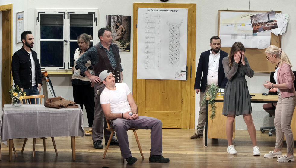 Nach zwei Monaten harter Probenarbeit – teilweise bis zu vier Mal in der Woche – feierte die Theatergruppe um Regisseur Matthias Tapper traditionell am Stephanstag Premiere mit ihrem diesjährigen Stück „Der entführte Selbstmordeinbruch“. Angefangen von der Ausstattung und Kulisse, die mit viel Liebe zum Detail gestaltet wurde – bereits an der Eingangstüre zur Halle wurden die Besucher von einem „neuen“ Plan zum Turm im Ried empfangen – bis hin zu Comedy-Einlagen mit der Einbeziehung des Publikums bot dieses Theaterstück alles, was das Herz des Lustspiel-Fans begehrt. Von der darstellerischen Qualität und dem Pointen-Timing der insgesamt zehn Darsteller ganz zu schweigen.