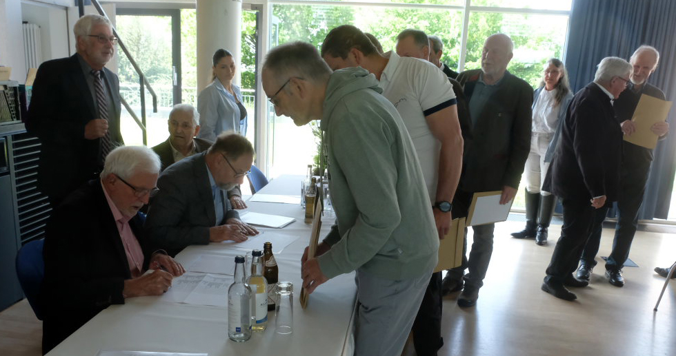 50 Jahre mit dabei sind die Reinstettener Karl Schneider, Erwin Gerster und Franz Miller, die dafür die Goldene Medaille mit Lorbeerkranz erhielten.