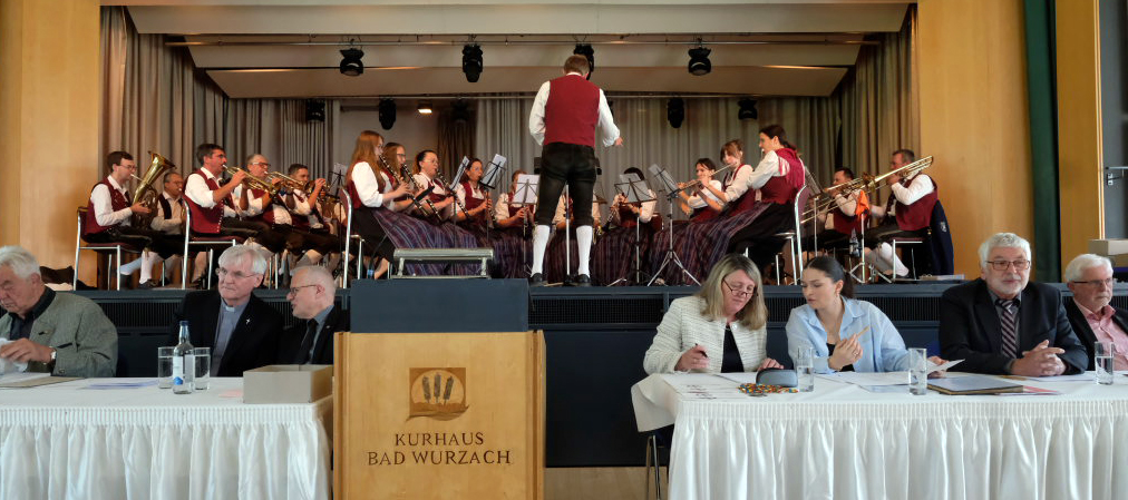 Bad Wurzach – Traditionell am Pfingstmontag findet in Bad Wurzach die vom Wallfahrtsausschuss organisierte Blutreitergruppenführerversammlung im Kurhaus statt, bei der viele organisatorische Details zu dem am zweiten Freitag im Juli stattfindenden Heilig-Blut-Fest mit den Gruppenführern geklärt werden. Zudem ist das stets der Rahmen, um verdiente Blutreiter und Musikanten zu ehren.