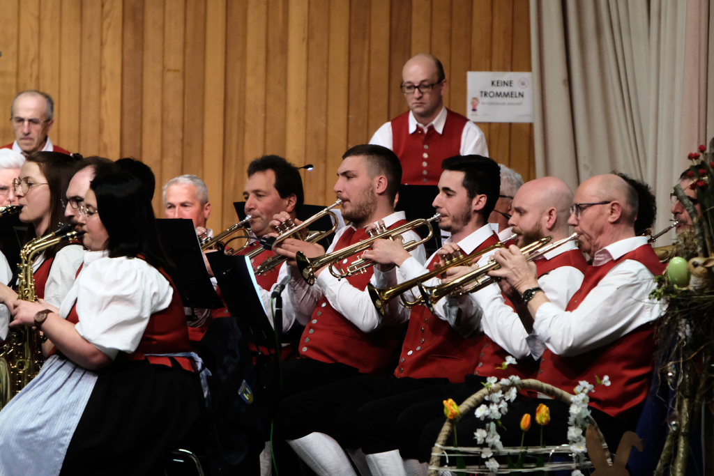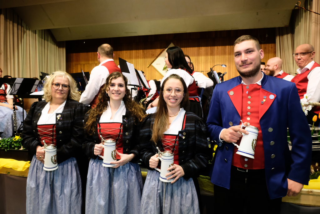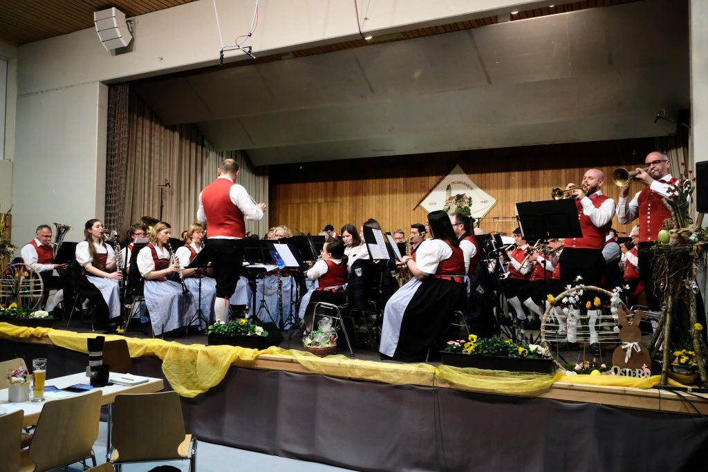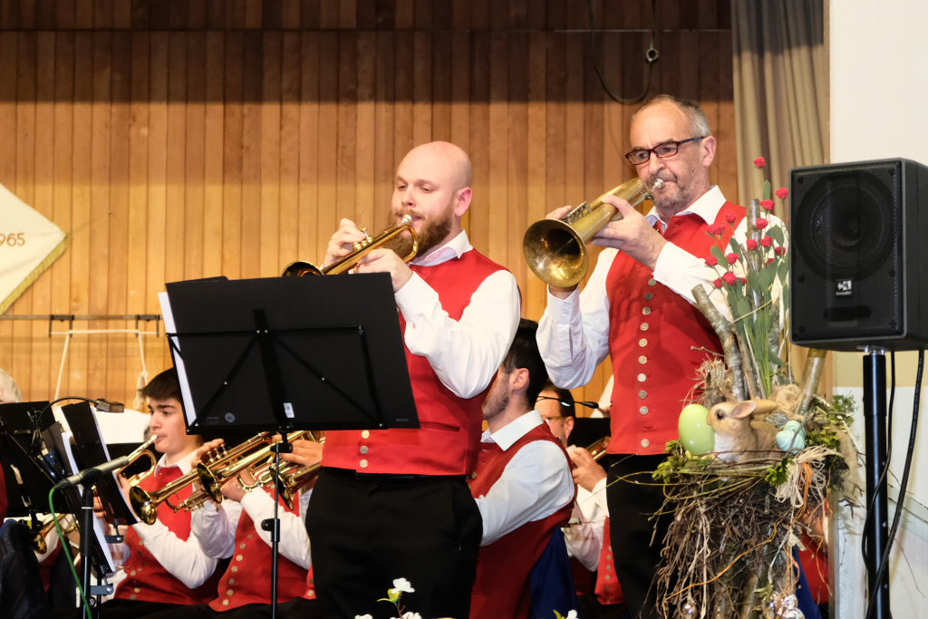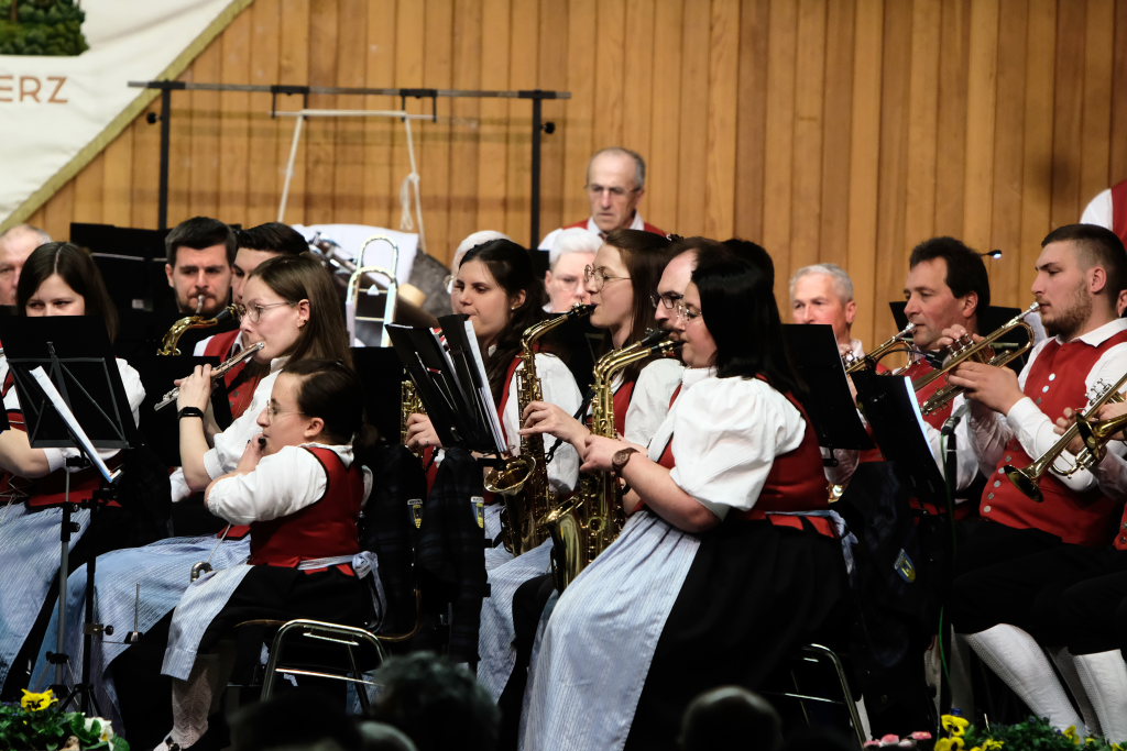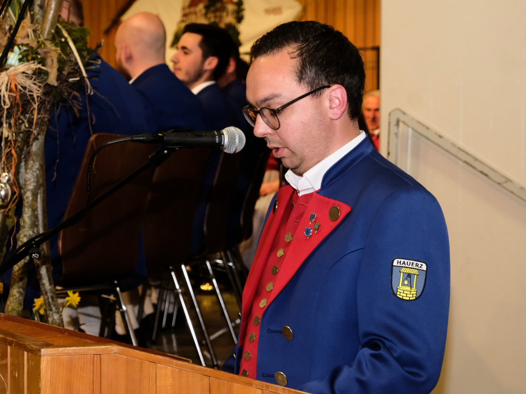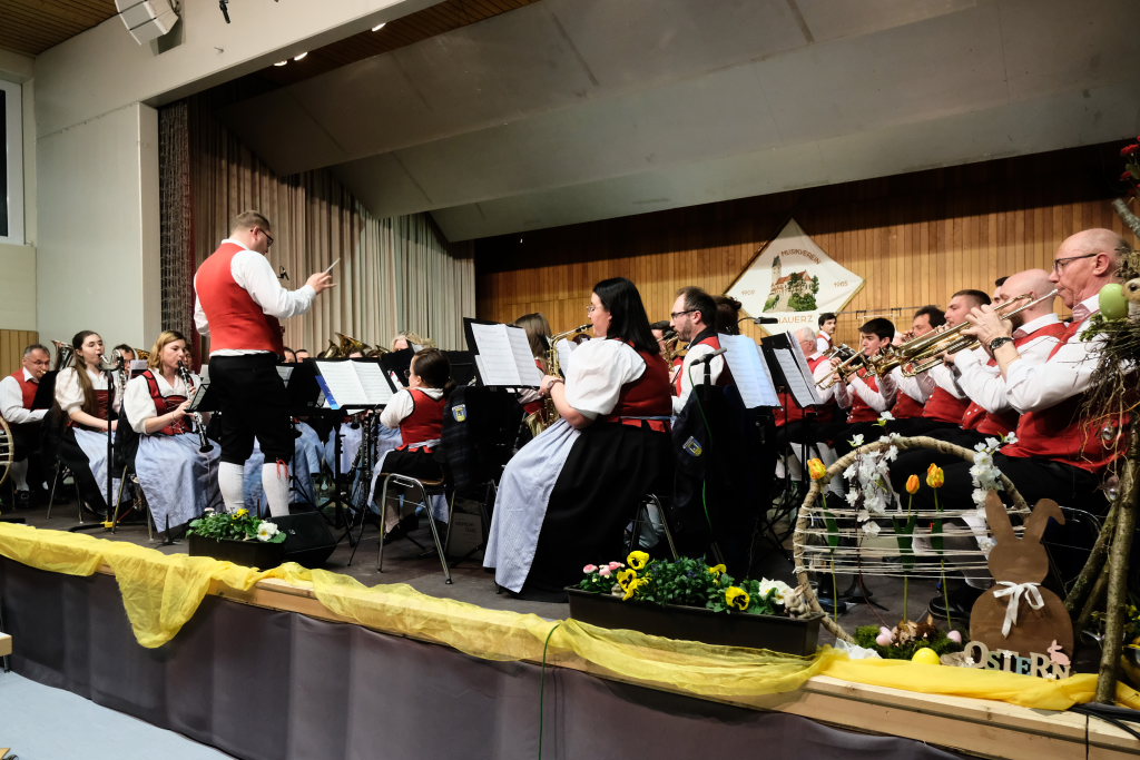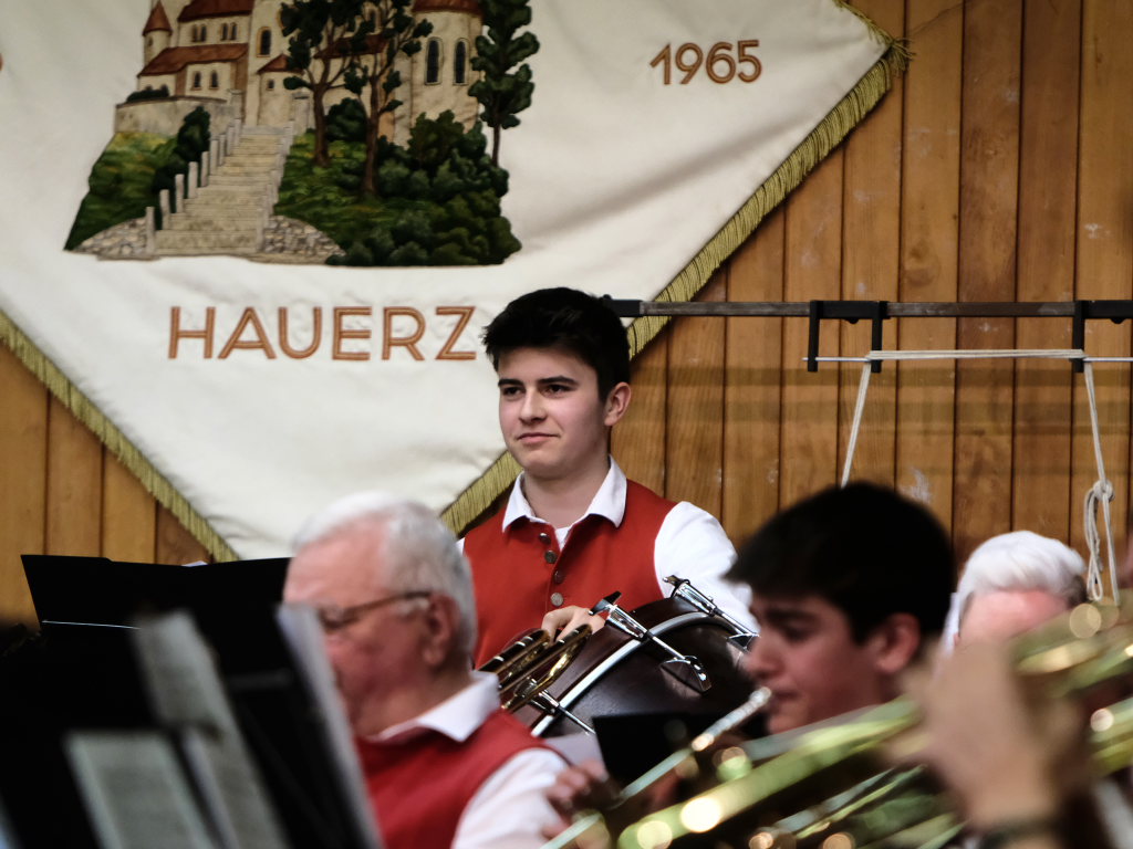 Hauerz – Die Trachtenkapelle Hauerz gestaltete am Ostersonntag, 31. März, in der Festhalle Hauerz erstmals unter der musikalischen Leitung von Dirigent Simon Wältl ihr traditionelles Osterkonzert, das sie in knapp dreimonatiger Probenzeit einstudiert hat. Rudi Hämmerle, der Blasmusikkreisverbandsvorsitzende, freute sich, verdiente Musiker der Kapelle auszeichnen zu dürfen.