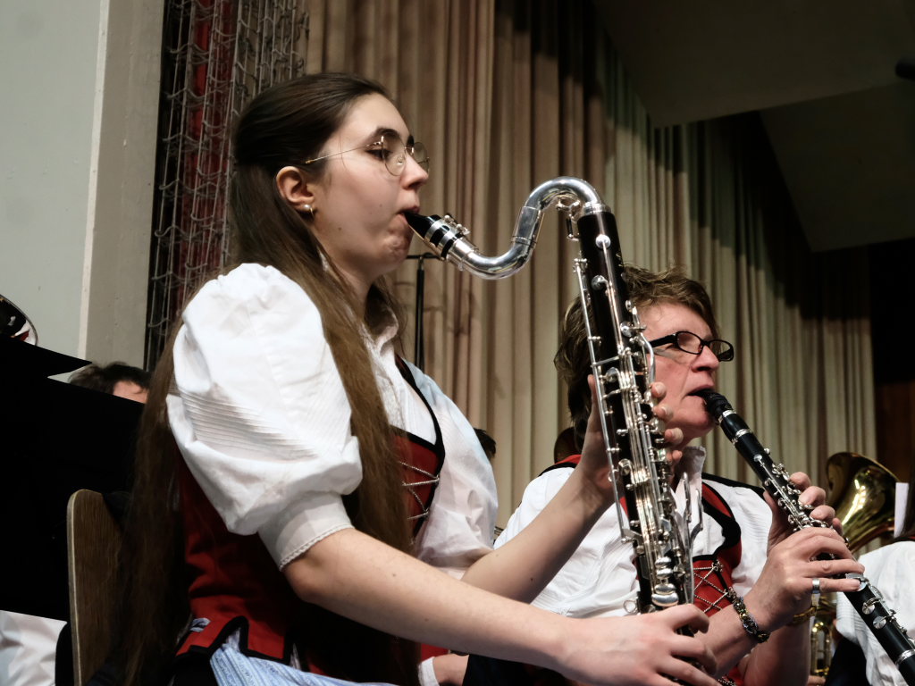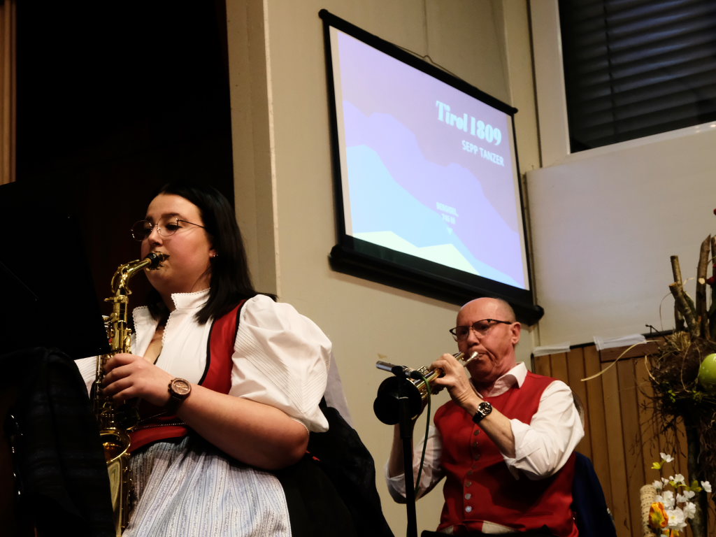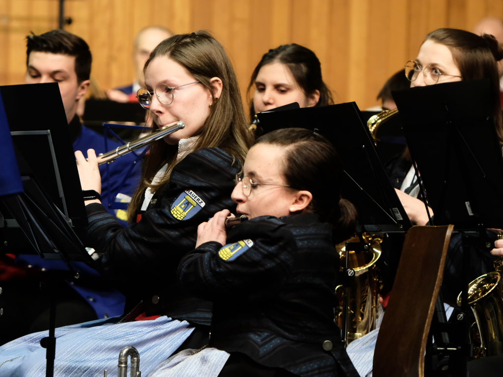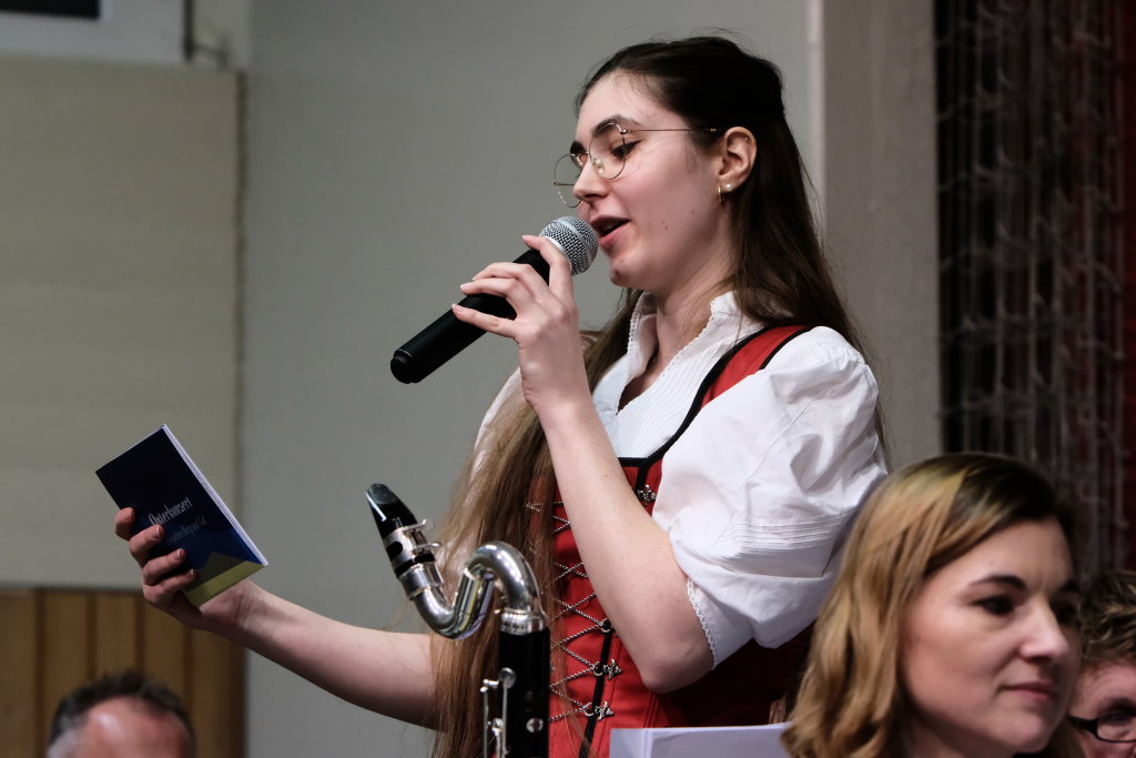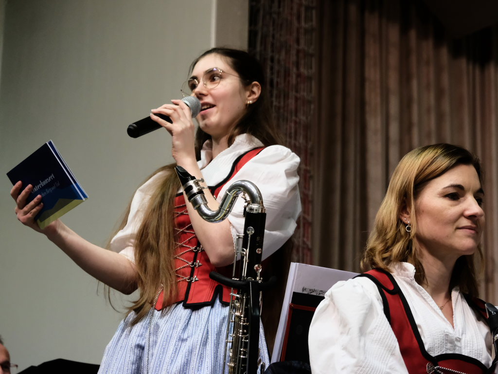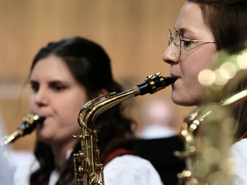 Nach den Ehrungen setzte der Musikverein Hauerz sein Konzert mit dem bekannten Popsong „Purple Rain” von Prince im Arrangement von Philipp Sparke fort. Mit ihrem Saxophonsolo konnte sich Elea Engelsberger als Solistin auszeichnen, während Simone Ritscher hierbei zum Gesangsmikrophon griff und auch sie konnte diese Aufgabe mit Bravour meistern.