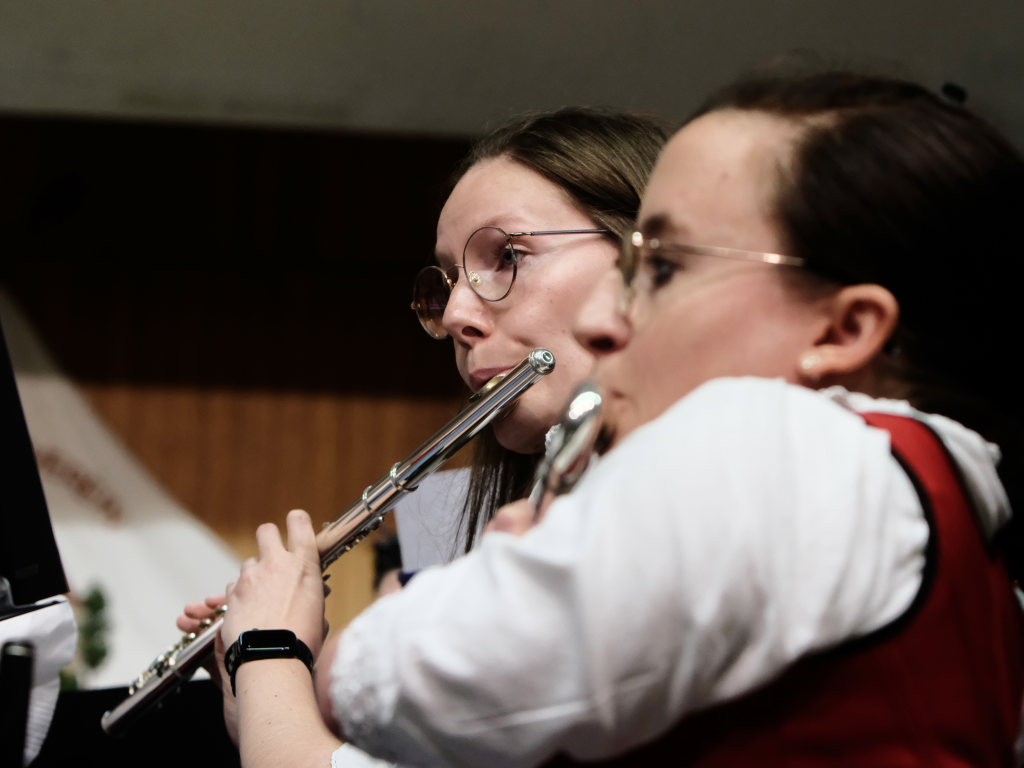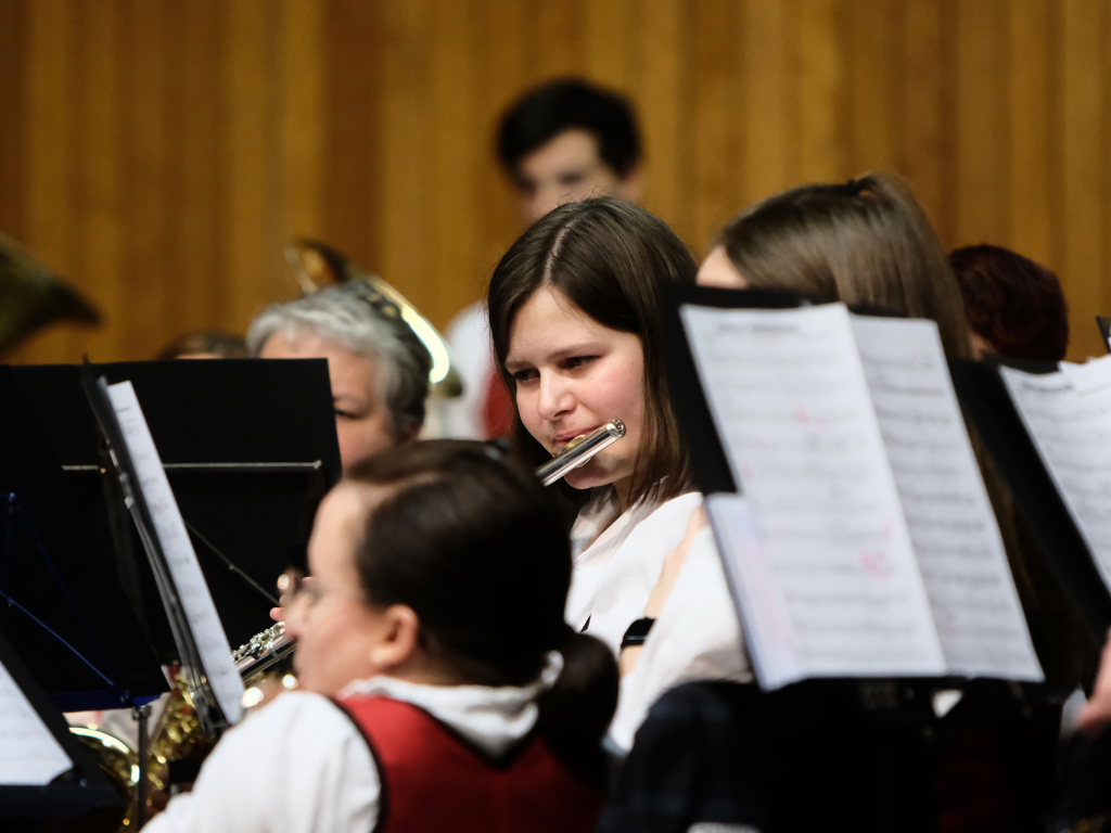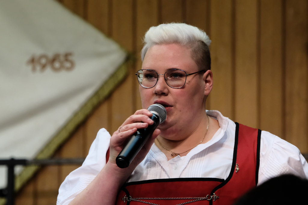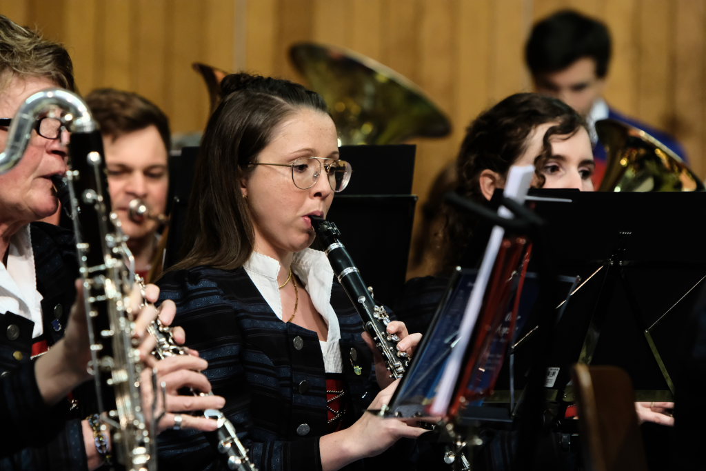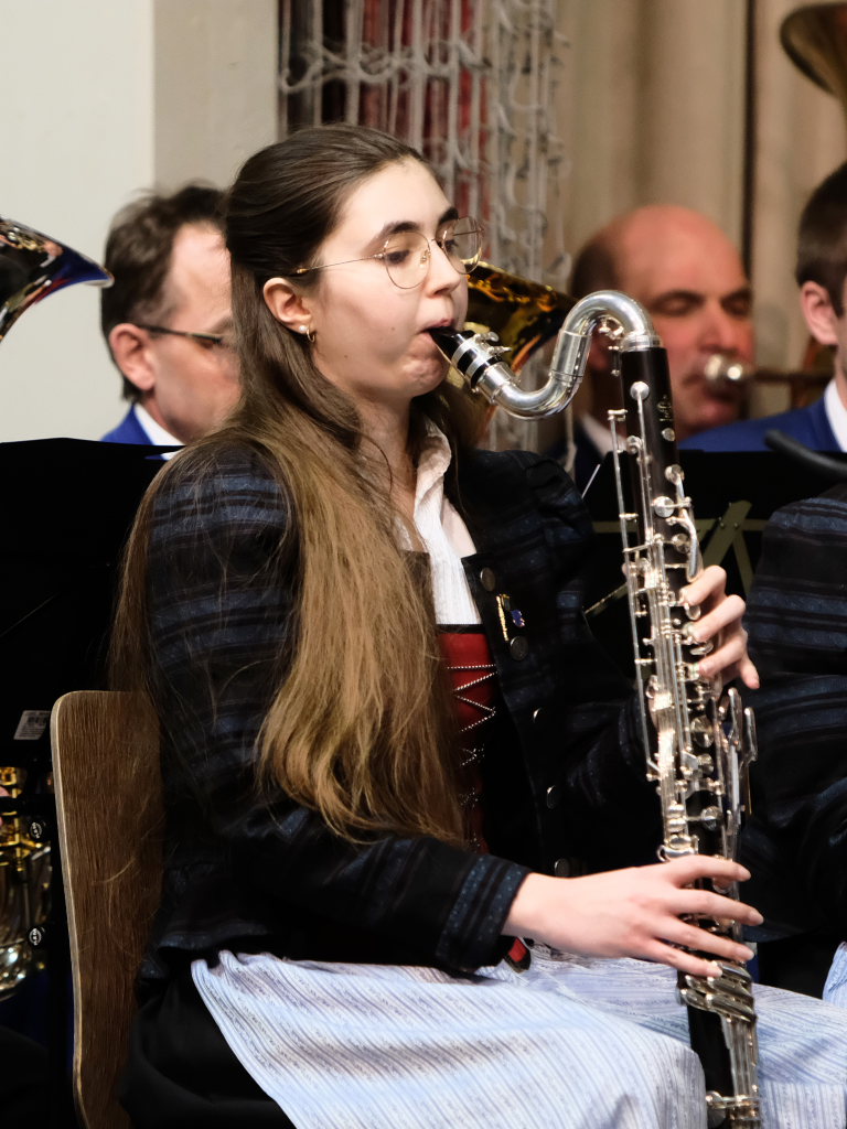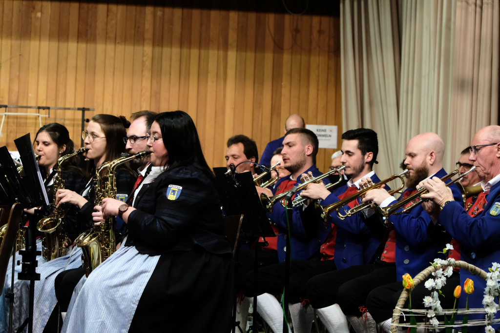 Nach den Ehrungen setzte der Musikverein Hauerz sein Konzert mit dem bekannten Popsong „Purple Rain” von Prince im Arrangement von Philipp Sparke fort. Mit ihrem Saxophonsolo konnte sich Elea Engelsberger als Solistin auszeichnen, während Simone Ritscher hierbei zum Gesangsmikrophon griff und auch sie konnte diese Aufgabe mit Bravour meistern.