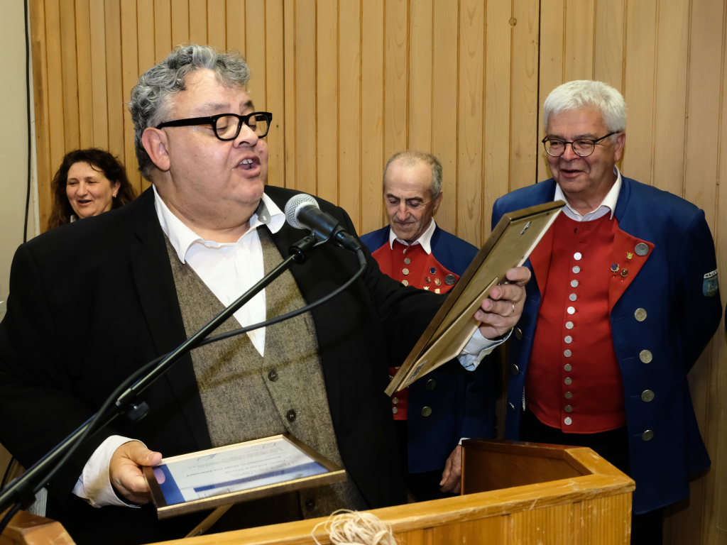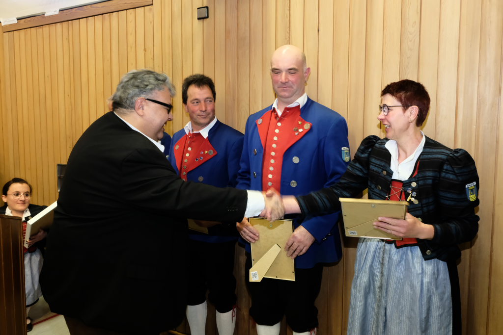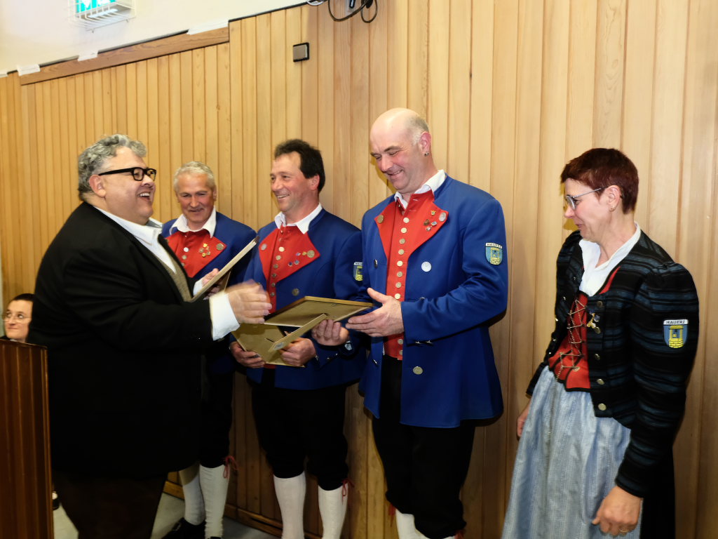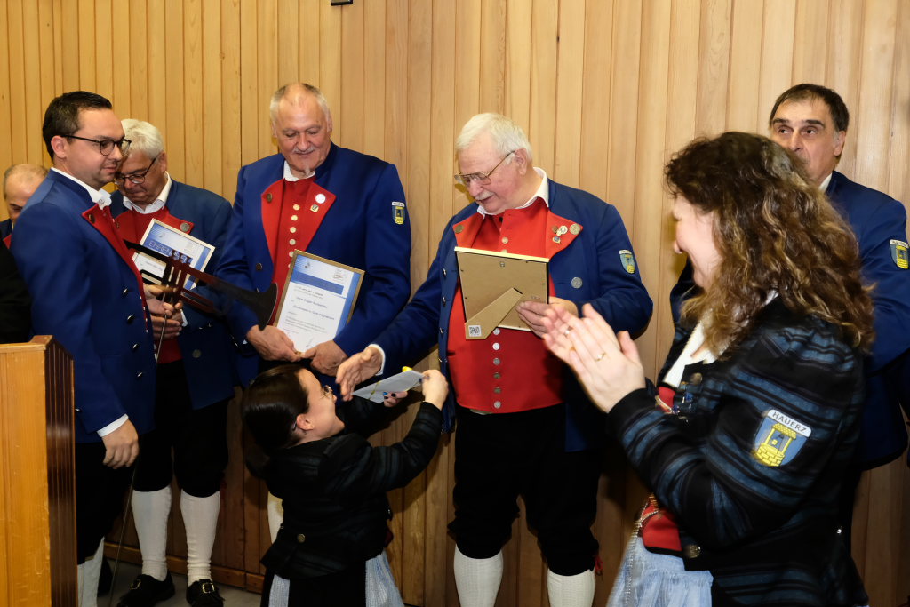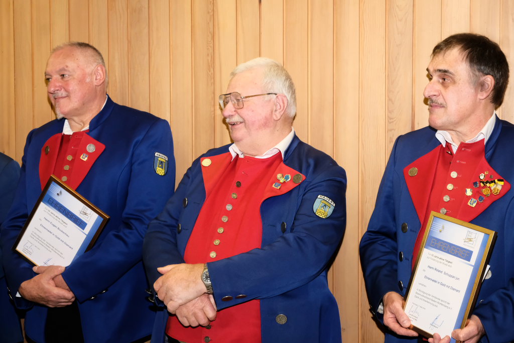 Das Highlight bei den Ehrungen war jedoch die Ehrung von Eduard Menig, der für 60 Jahre aktive Tätigkeit für den Musikverein mit der Ehrennadel in Gold mit Diamant und Ehrenbrief ausgezeichnet wurde. Hämmerle bezeichnete ihn in seiner Laudatio als „den größten Landwirt“ von Hauerz. Denn seine 400.000 Bienen seien kaum zu toppen.