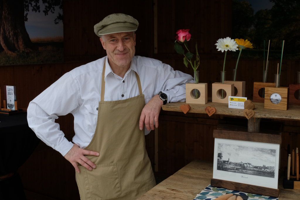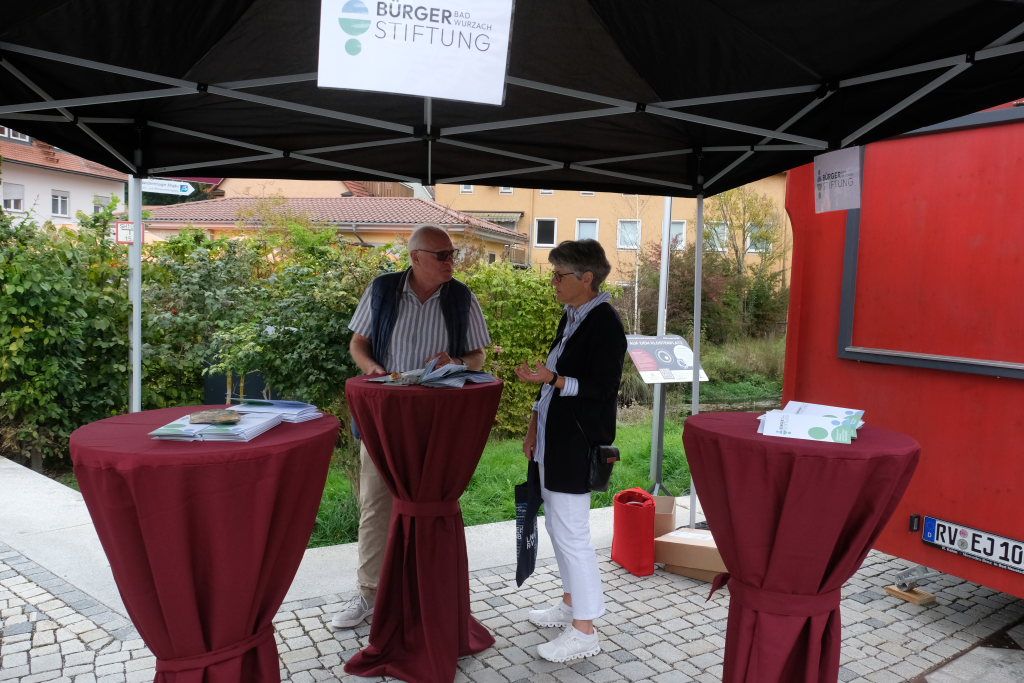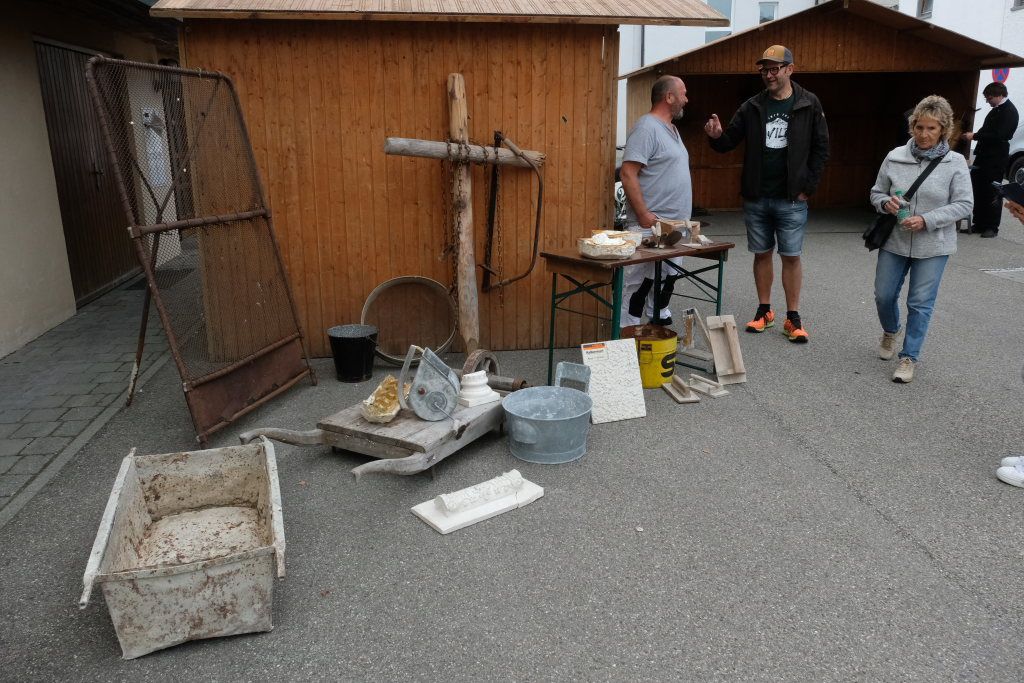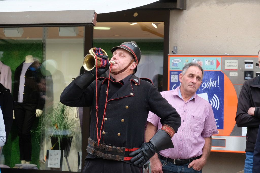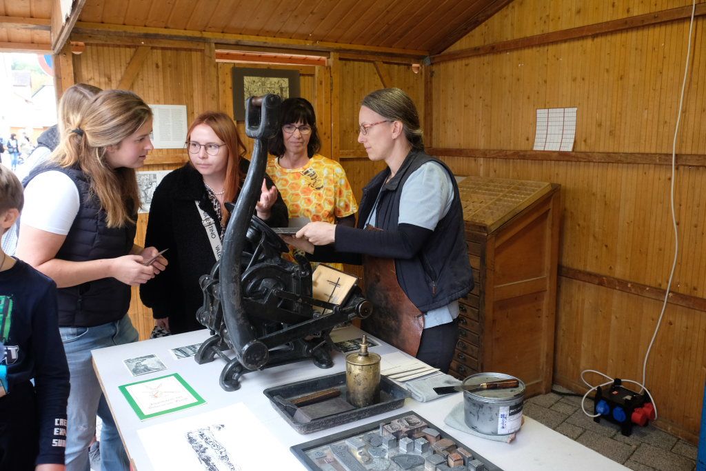 Nebenan in der Stadtbücherei konnten sich Kinder an einer märchenhaften Geschichte freuen, während die Erwachsenen nach Lust und Laune im Bücherflohmarkt stöbern konnten. Einige Schritte stadteinwärts konnte man, nachdem man die Autoausstellung eines Wurzacher Autohaus passiert hatte, beim Eingang zur Bürgerstraße beim “Uhrenflüsterer” Westermayer, dessen Vorfahr vor 135 Jahren das Geschäft gegründet hatte, das ehemalige Uhr- und Schlagwerk der Grundschule bewundern. Das bildete gemeinsam mit dem gegenüberliegen Stand der Druckerei Rothenhäusler, die Einblicke in Historie des Druckens zeigte, den Eingang zum historischen Handwerkermarkt, bei dem ein Büchsenmacher sein Handwerk präsentierte, Schornsteinfeger kleine Glücksbringer verschenkten, ein Schreiner die Präzision seines Handwerkes aufzeigte. Am Stelzenmühlemühle-Stand konnte jeder mittels eines Hometrainer-Fahrrades sein Mehl auf historische Art selbst mahlen.