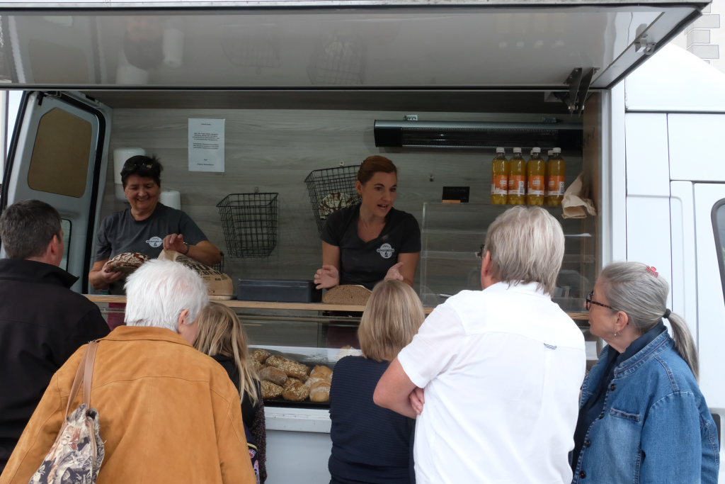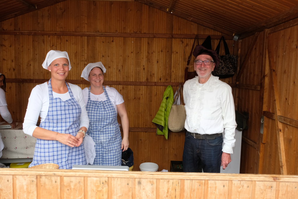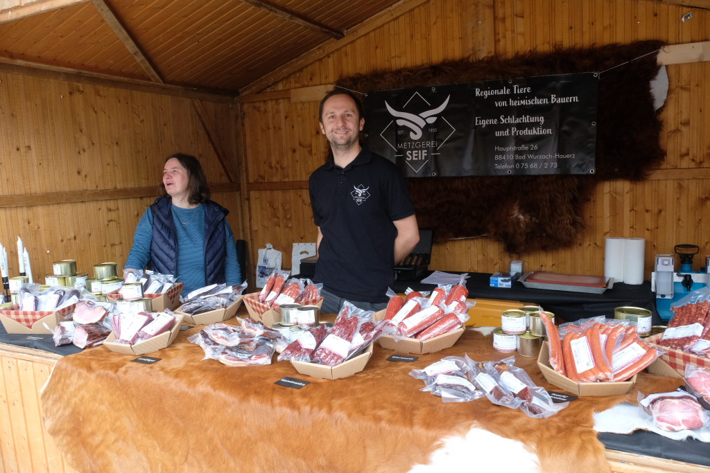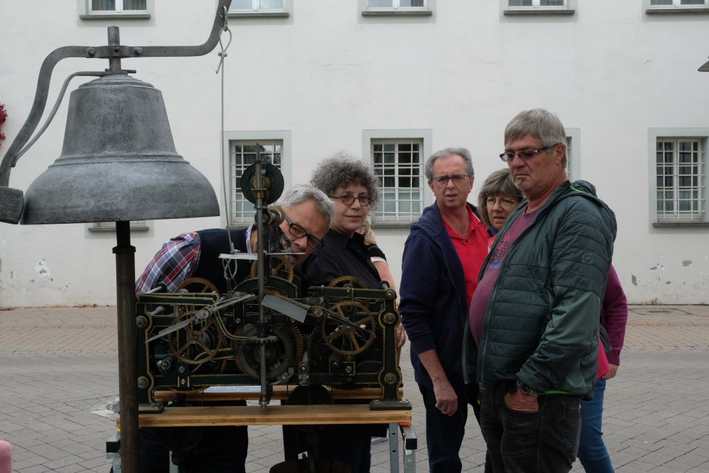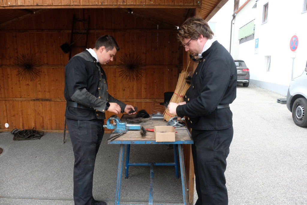 Nebenan in der Stadtbücherei konnten sich Kinder an einer märchenhaften Geschichte freuen, während die Erwachsenen nach Lust und Laune im Bücherflohmarkt stöbern konnten. Einige Schritte stadteinwärts konnte man, nachdem man die Autoausstellung eines Wurzacher Autohaus passiert hatte, beim Eingang zur Bürgerstraße beim “Uhrenflüsterer” Westermayer, dessen Vorfahr vor 135 Jahren das Geschäft gegründet hatte, das ehemalige Uhr- und Schlagwerk der Grundschule bewundern. Das bildete gemeinsam mit dem gegenüberliegen Stand der Druckerei Rothenhäusler, die Einblicke in Historie des Druckens zeigte, den Eingang zum historischen Handwerkermarkt, bei dem ein Büchsenmacher sein Handwerk präsentierte, Schornsteinfeger kleine Glücksbringer verschenkten, ein Schreiner die Präzision seines Handwerkes aufzeigte. Am Stelzenmühlemühle-Stand konnte jeder mittels eines Hometrainer-Fahrrades sein Mehl auf historische Art selbst mahlen.