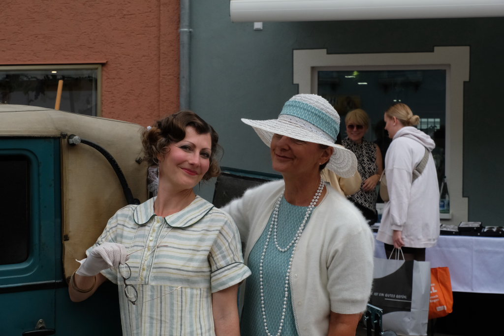 Interessante Oldtimer-Autos vom zu seiner Zeit sehr beliebten Renault R4 über einen Renn-Simca bis zu einem knall-orangenen Trabbi, der bei einer Straßenmeisterei im Torgau eingesetzt war, erwarteten den Besucher beim Spital. Richtig historische Oldtimer warteten dann in der Herrenstraße, wo Karl Ehrmann einige seiner ältesten automobilen Pretiosen präsentierte. Passend zum 1926er-Laubfrosch posierten die Damen des Näherinnen-Club in ihren selbstgenähten Kleidern im Stile der 1920er-Jahre Mode.