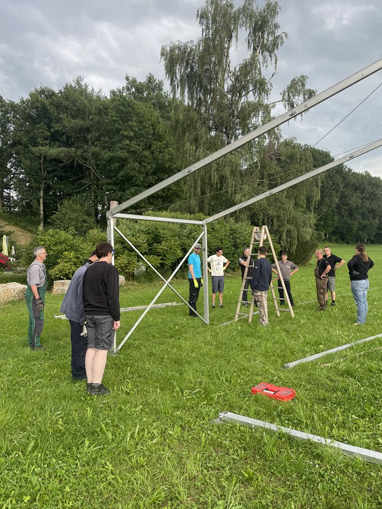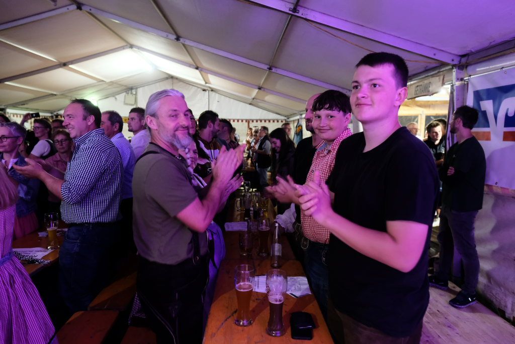 Mit vielen bekannten Polkas, wie etwa „Am Waldesrand“, die, wie der Schlagzeuger und Ansager der Truppe sagte, sehr gut zum idyllisch gelegenen Eggmannsried und zur Location bei der Stelzenmühle passe, sorgten sie für sehr gute Stimmung im Festzelt. In diesem wurden die Gäste von den Musikern des MV Eggmannsried bestens mit Essen und Trinken versorgt. Nicht fehlen durften musikalisch natürlich die Klassiker „Böhmischer Traum“ und – bei diesem Lied kann auch hierzulande schon fast jedes Kind mitsingen – „Dem Land Tirol die Treue“. Und natürlich hatten die jungen Musiker auch moderne Blasmusik, etwa „Ein Leben lang“ der Schweizer Kultband der „Fäaschdbänkler“ im Repertoire.