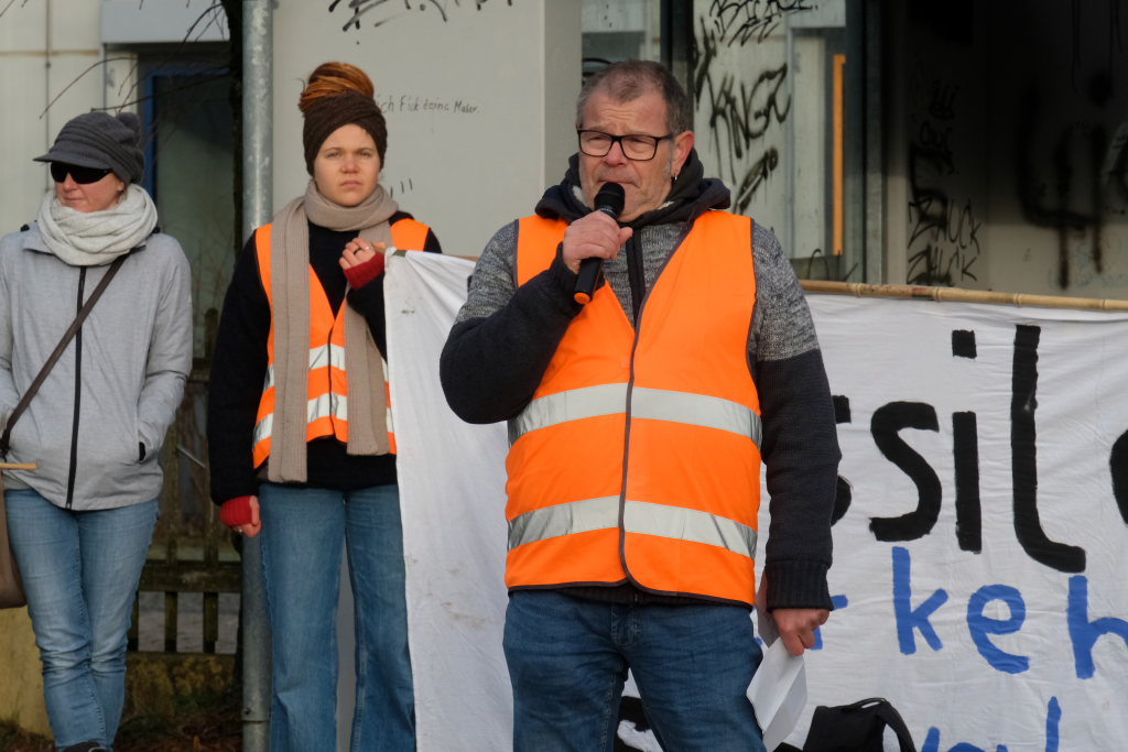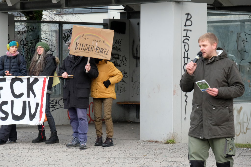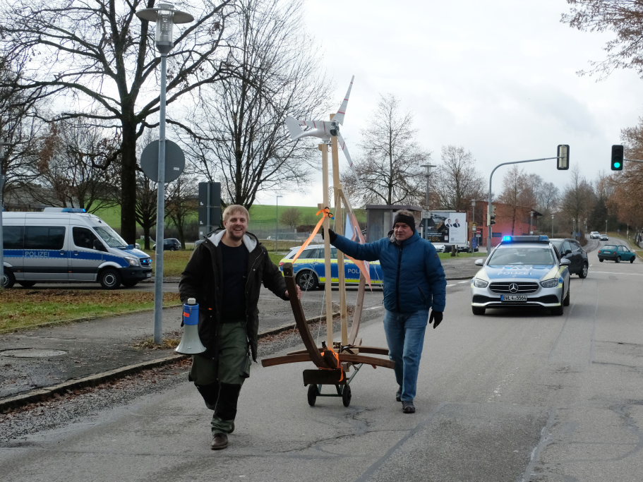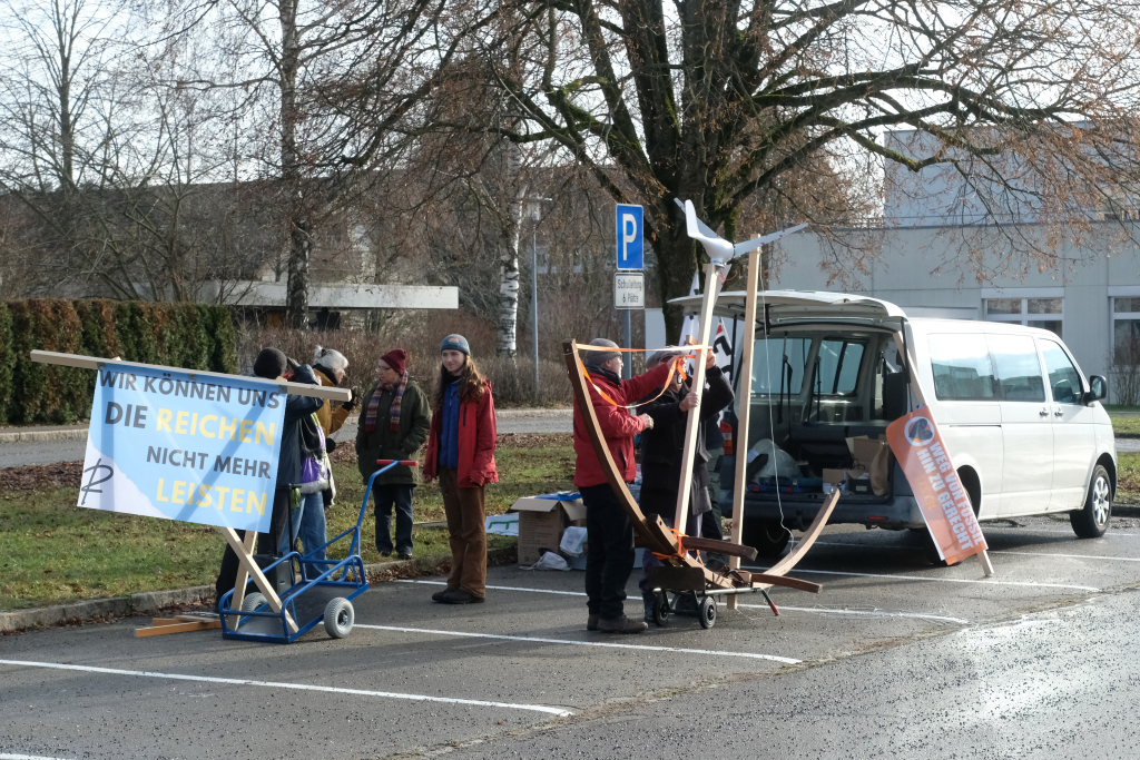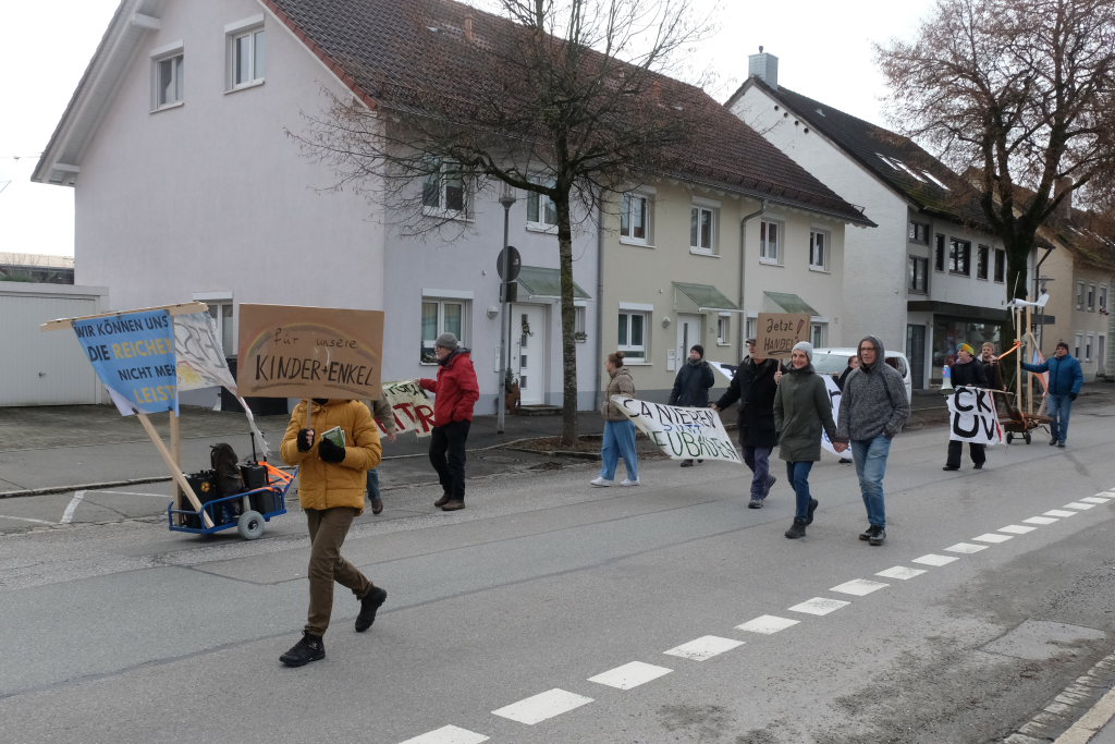 Noch einmal Lukas Häfele: Er sprach nach der Rückkehr vom Klosterplatz bei der Zwischenstation am Busbahnhof noch einmal den riesigen ökologischen Fußabdruck der Reichen an, die mal kurz mit dem Privatjet für einen Kaffee nach Sylt flögen. Und er prangerte auch das Verhalten der Behörden an, nachdem bei Unterzeil / Aichstetten ursprünglich Windkraftanlagen geplant waren, dann aber wieder – eben wegen des Flugplatzes – von der Agenda genommen wurden (im neuen Regionalplan-Entwurf wieder enthalten / Anm. d. DBSZ.-Red.).